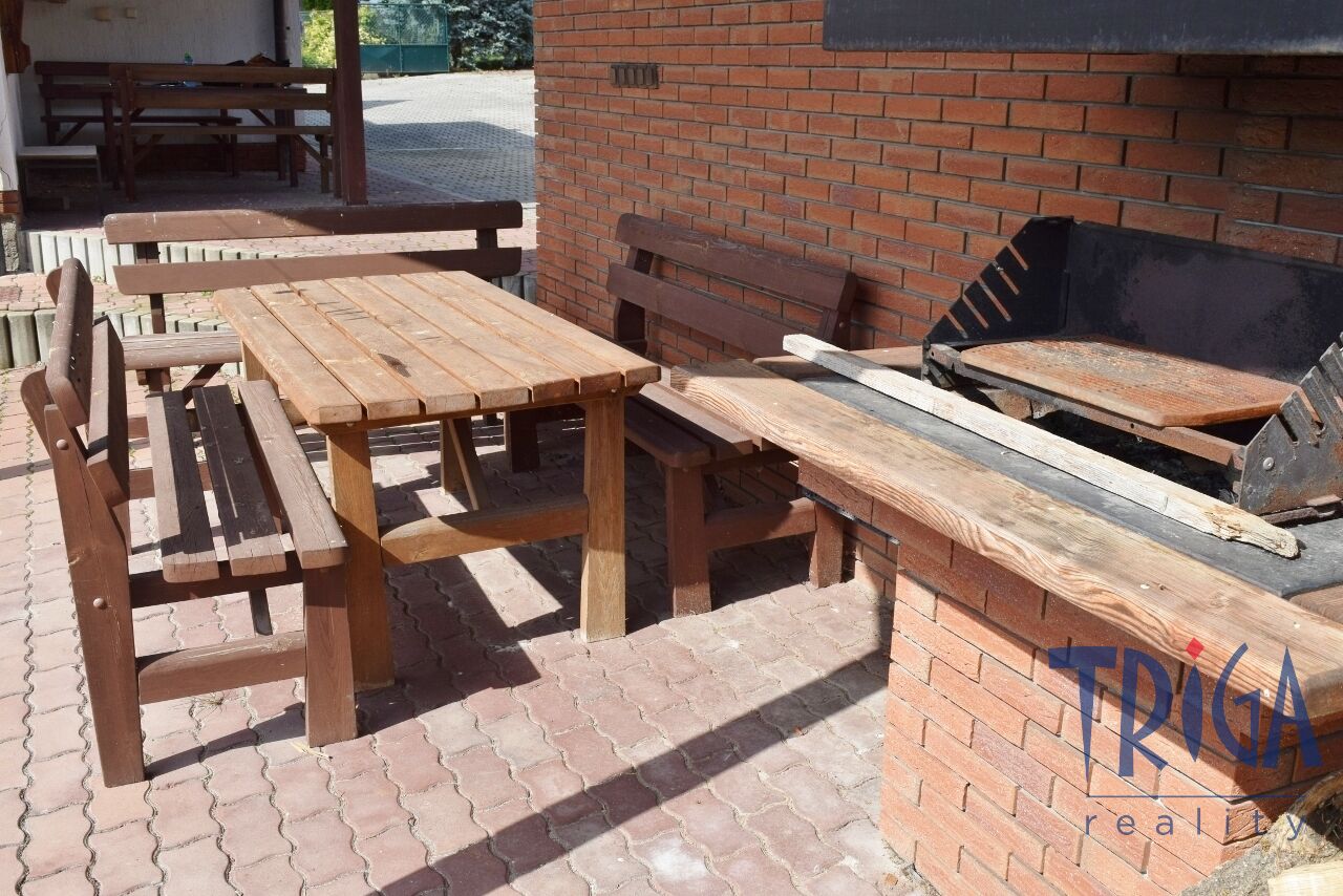 Vedle domu stojí samostatný zděný objekt, ve kterém se nachází garáž s dílnou pro kutily, skladem dřeva, kolnou a dalším úložným prostorem, vše o podlahové ploše cca 80 m2. Součástí této stavby je pergola s venkovním krbem a grilem, odkud je velmi pěkný výhled.