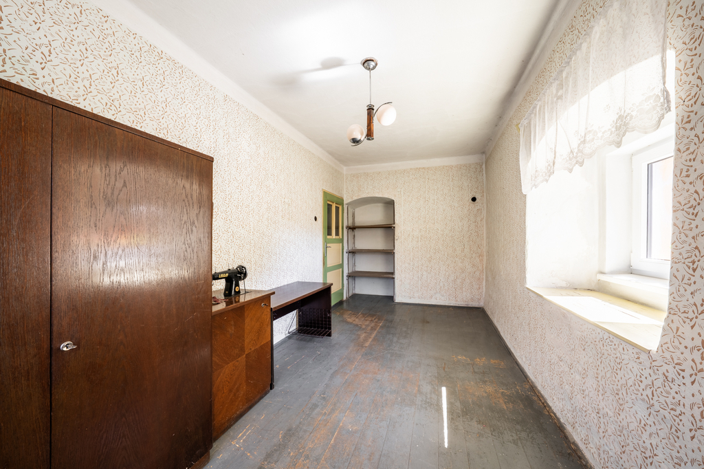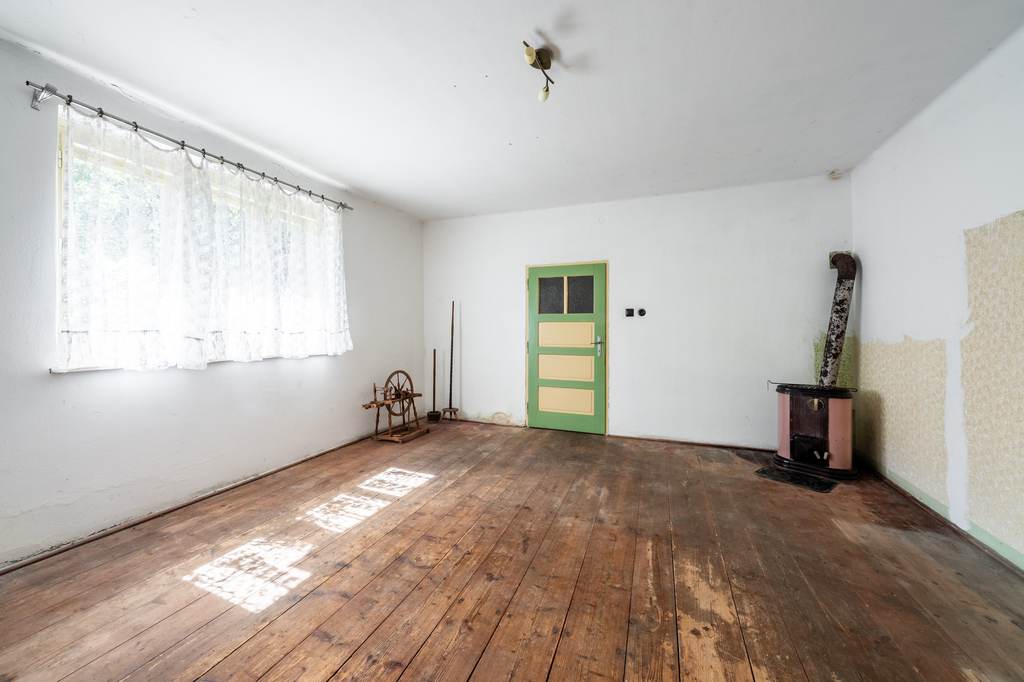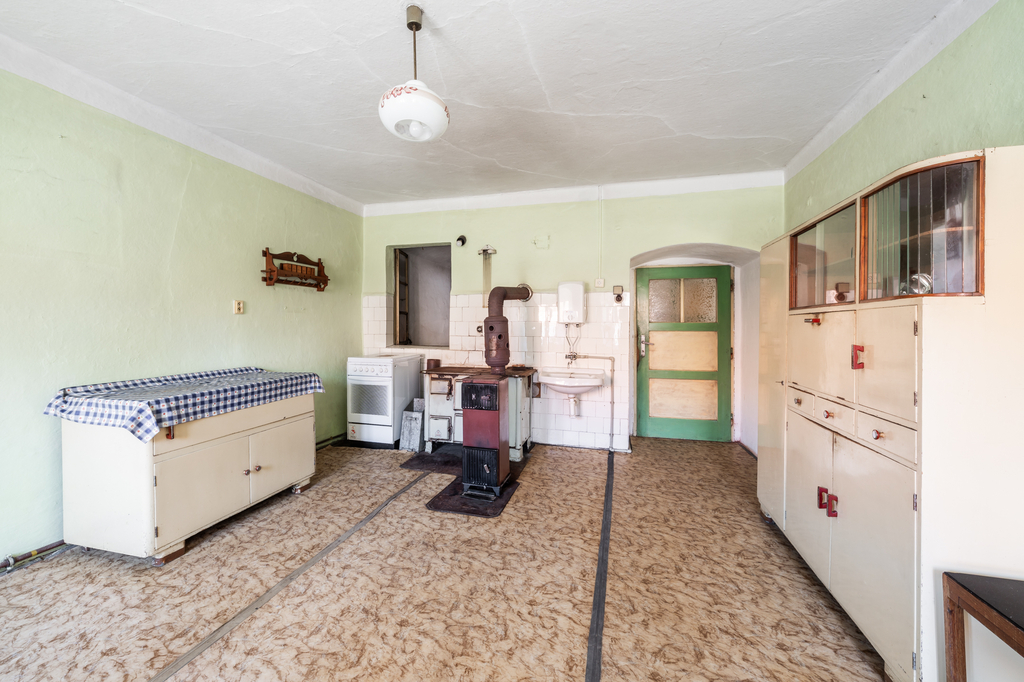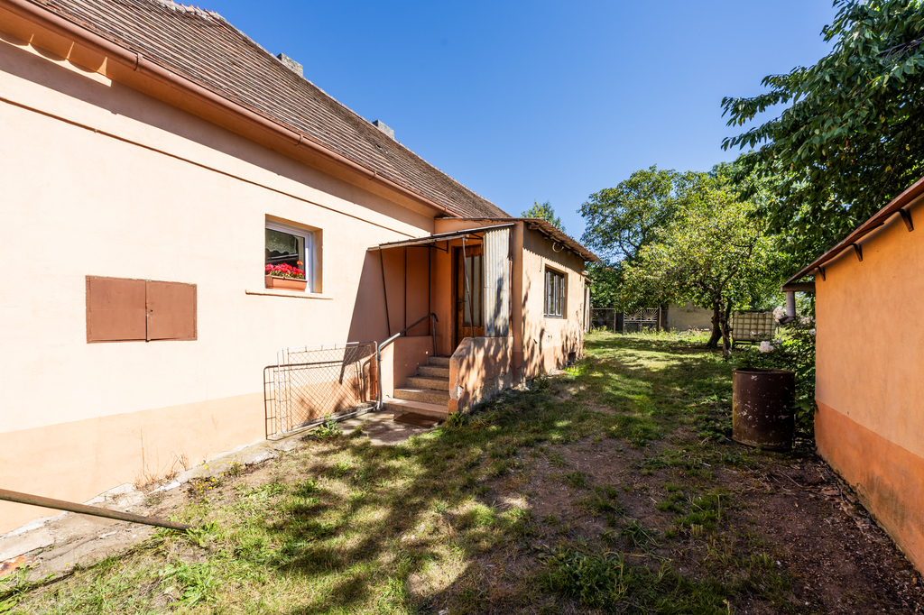 Dům je zděné konstrukce, z malé části podsklepený, s jedním nadzemním podlažím a podkrovím. Podkroví představuje volný půdní prostor s možností dalšího využití, který skýtá potenciál pro navýšení obytné plochy. Dispozice domu zahrnuje tři obytné pokoje, kuchyň, koupelnu, samostatnou toaletu, zádveří a předsíň se schodištěm do podkroví i sklepa.
