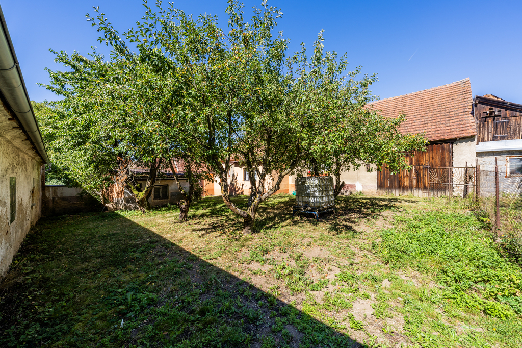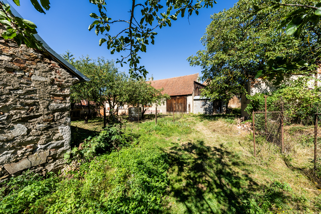 Na obytnou část domu přímo navazuje prostorná stodola, kterou lze po úpravách využít jako dílnu, sklad nebo přestavět na další obytný prostor. Na stodolu navazuje menší chlívek. Součástí pozemku je také samostatně stojící přízemní stavba sloužící jako dílna se skladem a dále garáž přístupná z ulice. Členitý pozemek je oddělený ploty do funkčních zón a nabízí jak prostor pro zahradničení, tak zázemí pro odpočinek.