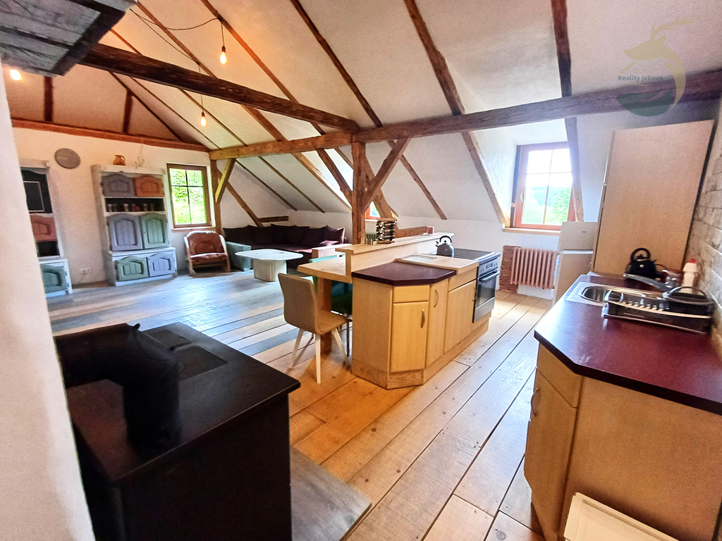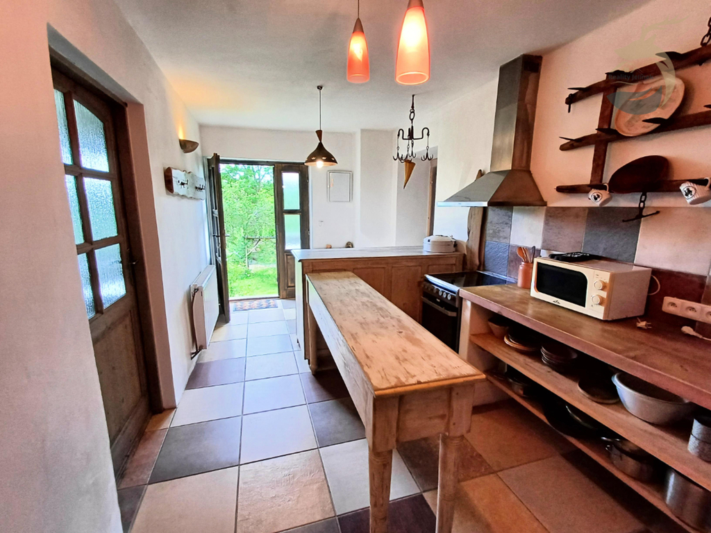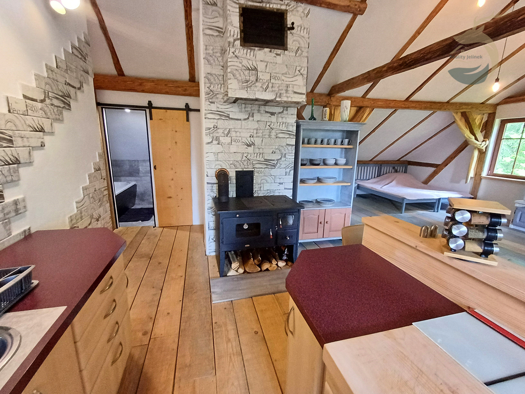 Chcete investovat s výborným výnosem okolo 15% ? V srdci Šumavy nabízíme k prodeji Chalupu Pod Lesem, jedinečný rekreační dům na polosamotě u Kašperských Hor. Objekt je po kompletní a velmi zdařilé rekonstrukci v moderním rustikálním stylu, který skvěle ladí s okolní šumavskou krajinou. Dům je rozdělen na tři samostatné apartmány, každý o výměře přibližně 80 m². Každý apartmán má vlastní vchod, kuchyni, koupelnu a vířivou vanu. V přízemním apartmánu je navíc prostor s kamny, který lze využít jako saunu.