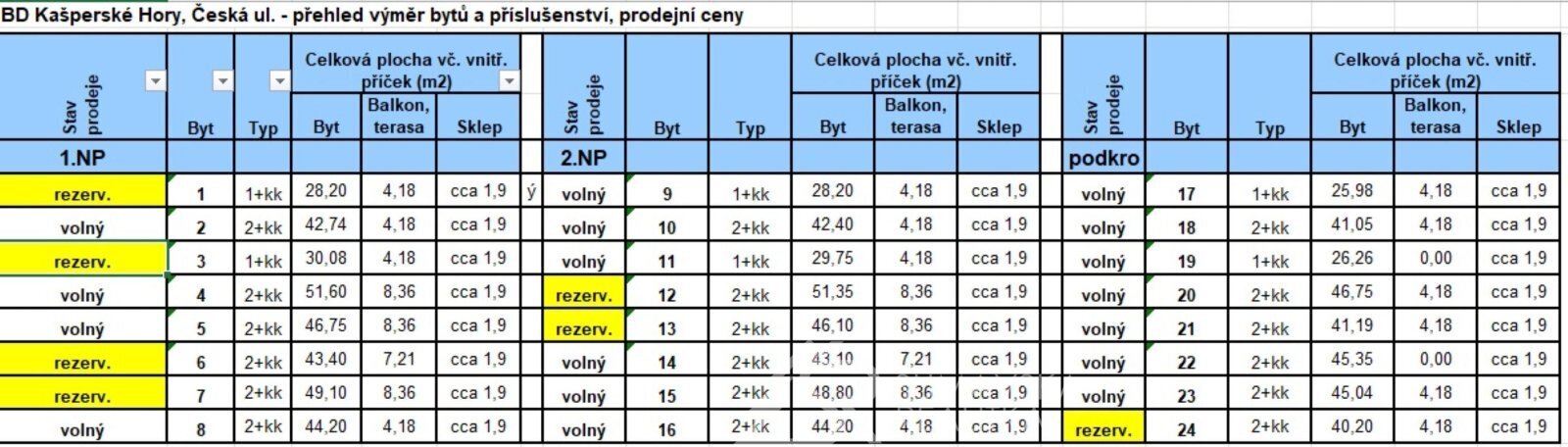 Celková kupní cena se vztahuje na celkovou sumu za bytovou jednotku, příslušenství (balkon,terasa,sklep),venkovní parkovací stání nebo vnitřní parkovací stání, spoluvlastnický podíl na pozemku pod budovou a kolem budovy, na společných částech domu a veškerých inženýrských sítí a rozvodech, resp. přípojkách, které budou v podílovém spoluvlastnictví vlastníků jednotek, vybavení zkolaudované bytové jednotky a DPH ve výši podle platného zákona. Pokud si nebudete přát žádné klientské úpravy (změna vybavení bytu, stavební úpravy atd.) – bude sjednaná cena konečná.