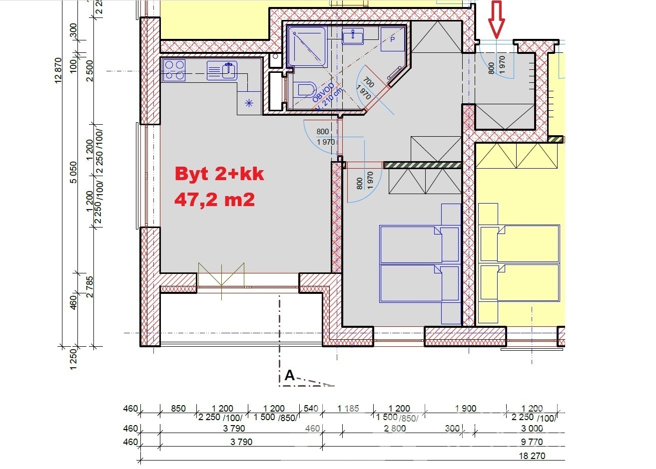 Dispozice bytu:2+kk