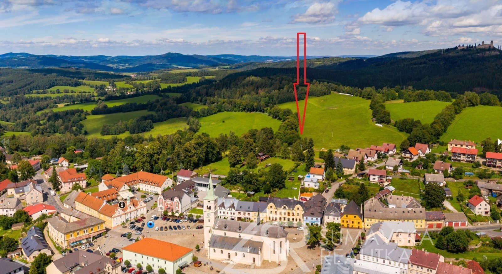 Hezká poloha je největší předností této nabídky. Pozemek je koncový, svažuje se od své horní hranice ke komunikaci, z níž lze řešit pohodlné komunikační napojení. Hraničí s okrajem městské zástavby a vzdálenější hranice už sousedí s volnou krajinou. Největší předností je výhled orientovaný západně do volné krajiny na vzdálené šumavské vrcholy. Jde o klidné místo pár minut pěší chůze od náměstí. Velkorysý prostor pro umístění stavby, klidné místo i výhled podtrhují spojení s mysticky krásnou šumavskou krajinou.