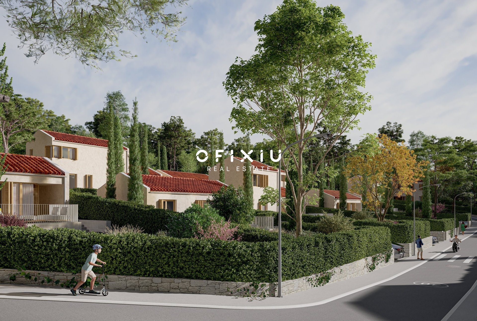 Architektura kombinuje současný středomořský styl s nadčasovou elegancí a kvalitními přírodními materiály. Velkoformátová okna přinášejí dostatek světla a propojují interiér s okolní zelení.