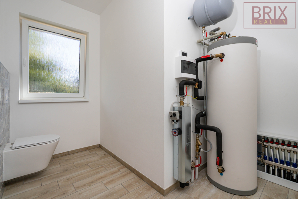 Nabízíme k prodeji krásnou novostavbu rodinného domu v Keblově o 124 m2 a dispozici 4+kk. Dům Vás jistě zaujme velkým obývacím pokojem s kuchyňským koutem a jídelnou, kde si budete užívat rodinný život a pohodu s přáteli. Domácí atmosféru tu jistě navodí i krbová kamna. Z obývacího pokoje je přímý vstup na zastřešenou terasu o 19 m2, kde budete moci trávit dlouhé letní večery. Také Vás zde jistě zaujme velká ložnice a dva dětské pokoje. V koupelně najdete vanu i sprchový kout a umyvadlo. Toaleta je samostatně. Druhou toaletu pak najdete v technické místnosti hned u vstupu. Dům je vytápěný podlahovým vytápěním pomocí tepelného čerpadla, takže už Vám jistě nebude zima od nohou. Dům má tepelně izolační trojskla, přípravu pro zabezpečovací systém s pohybovými čidly a také přípravu na venkovní kamery. Tepelné čerpadlo může být ovládané přes aplikaci. Voda je veřejná, kanalizace je svedena do vlastní čističky. Pozemek má celkem 957 m2, takže místa tu budete mít opravdu dost. Je zde také počítáno se dvěma parkovacími stáními. Součástí ceny je také kuchyňská linka na míru, oplocení pozemku a zámková dlažba před domem a na parkovacích místech. V širším okolí najdete veškerou občanskou vybavenost, na nájezdu na D1 jste jen za 7 minut. Do přírody, za relaxem i sportem budete moci chodit do nedalekých místních lesů a nebo třeba k vodní nádrži Švihov. Nenechte si utéct tuto nabídku a přijďte se podívat na prohlídku.