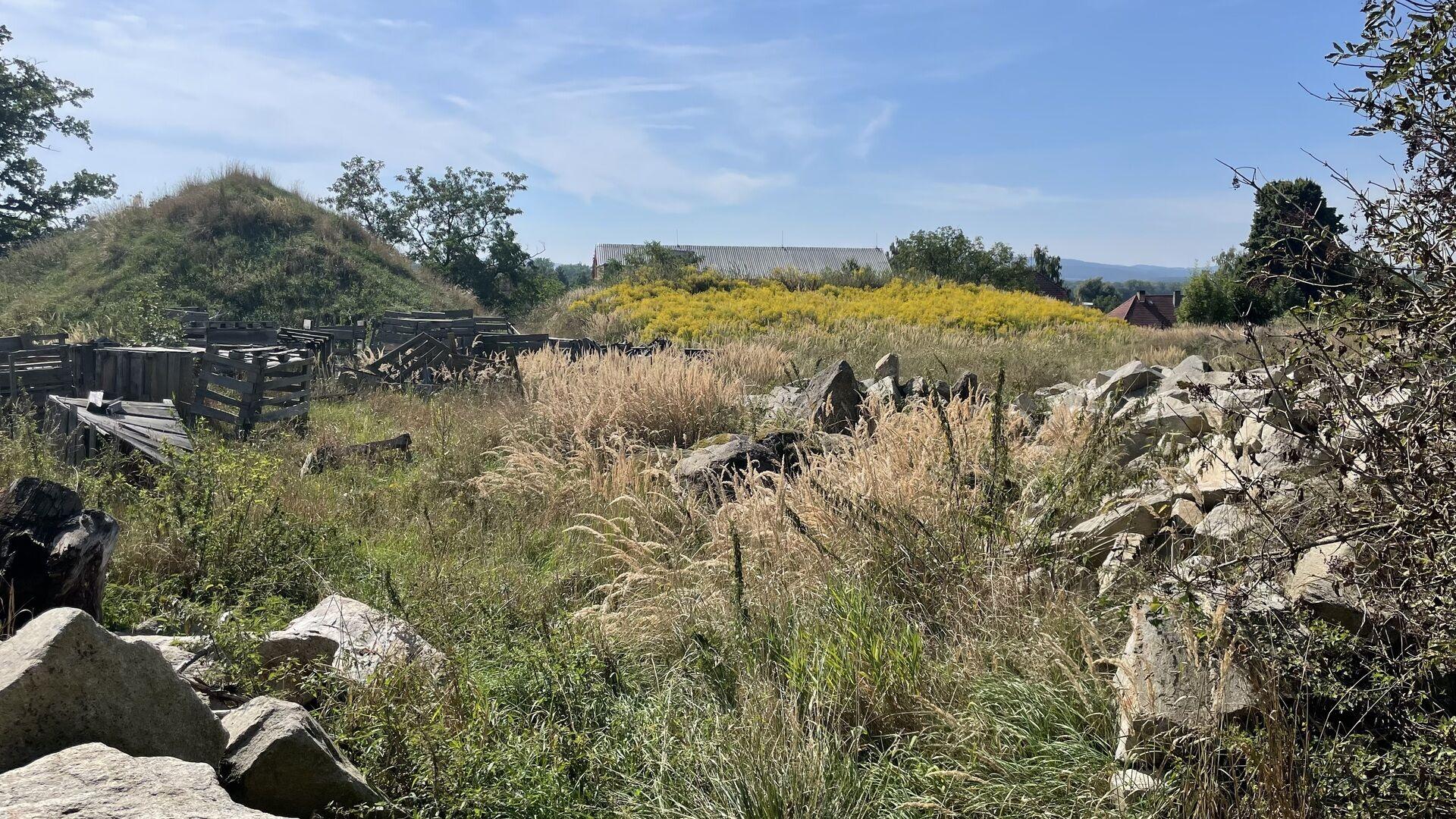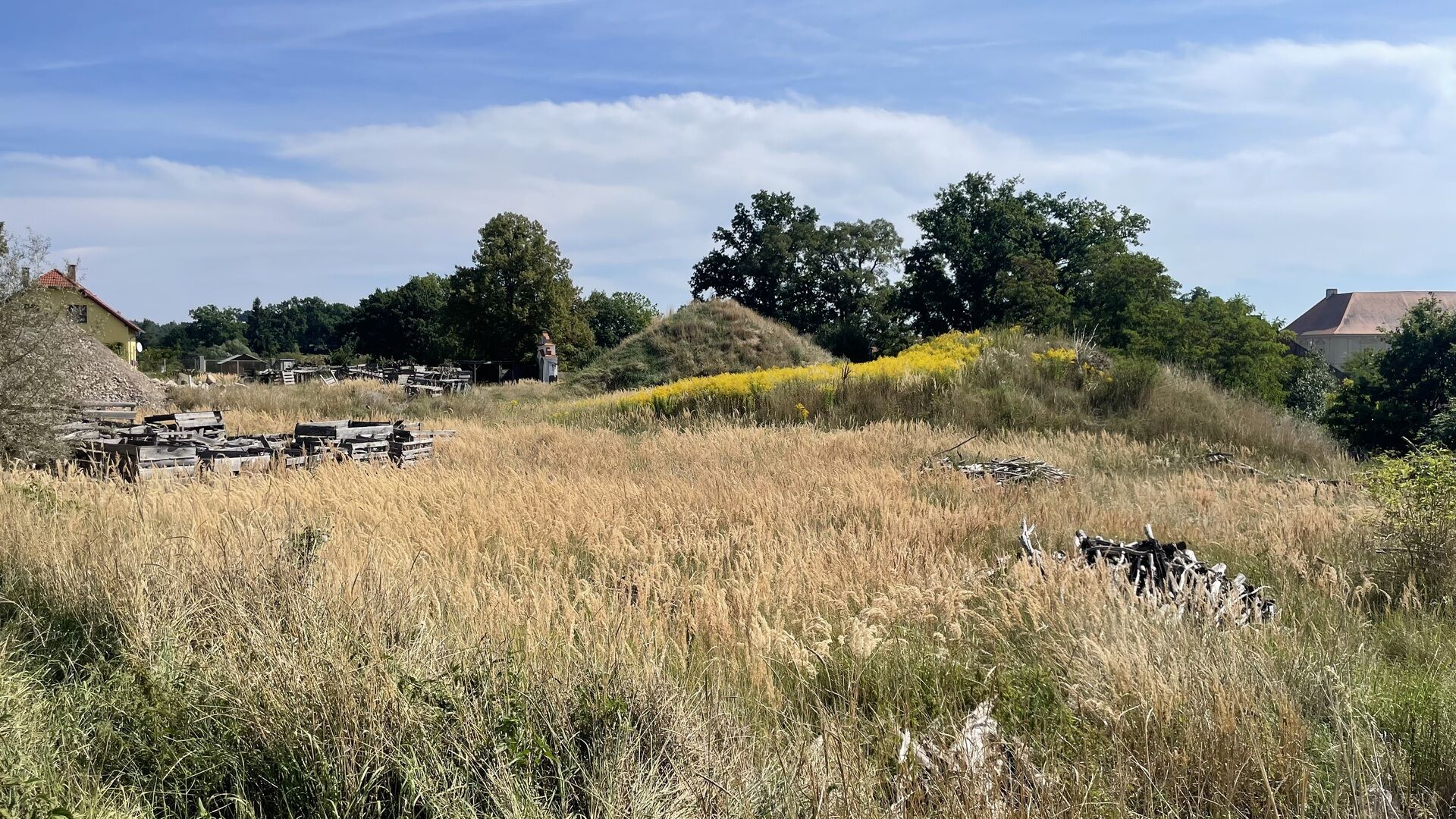 Pozemky vzájemně tvoří jednotný celek. Vyjma části pozemku parc. č. st. 38/10 a pozemku parc. č. st. 38/11 jsou beze staveb, nachází se v mírném svahu od severu k jihu, jsou neupravené, porostlé trávou a s hromadami suti. Přístup z veřejné komunikace ve vlastnictví státu.