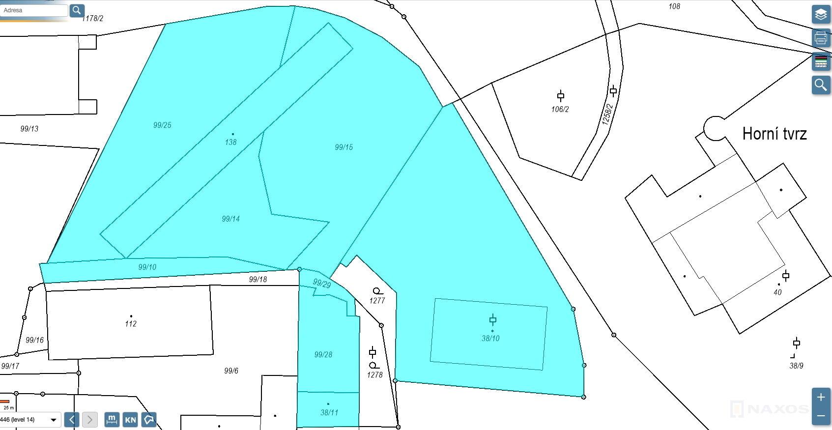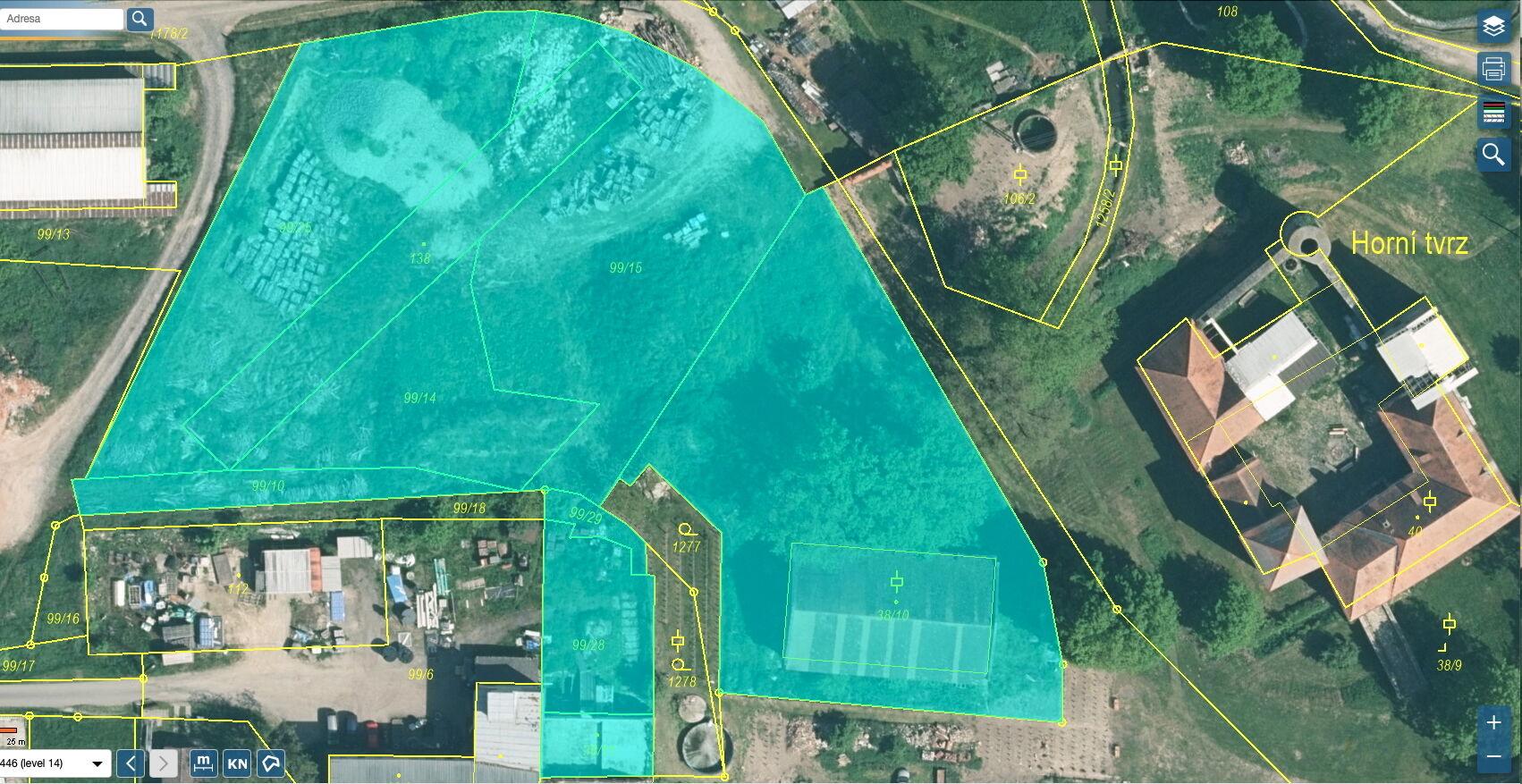 1) pozemek parc. č. 38/10 s výměrou 2.501 m2, který je nejblíž Horní tvrzi, je veden jako plocha přestavby SVs28 smíšená výrobní. Na pozemku se nachází historická budova bývalého kravína ze smíšeného zdiva, nyní ve špatném stavebně technickém stavu, nutná rekonstrukce, zastavěná plocha 446 m2. Nezastavěná část 2.055 m2 je svažitá a zatravněná s porostem.
