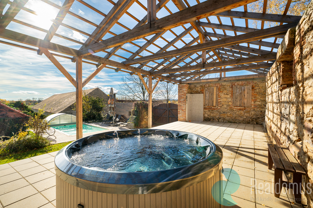 Nemovitost o celkové užitné ploše 267 m² na pozemku o rozloze 1528 m² nabízí ubytování pro 17 osob v pěti pokojích, dvě koupelny, čtyři samostatná WC, velký sál na cvičení a společné aktivity, krytou terasu, venkovní krytý bazén, saunu s ochlazovací kádí a vířivku.
