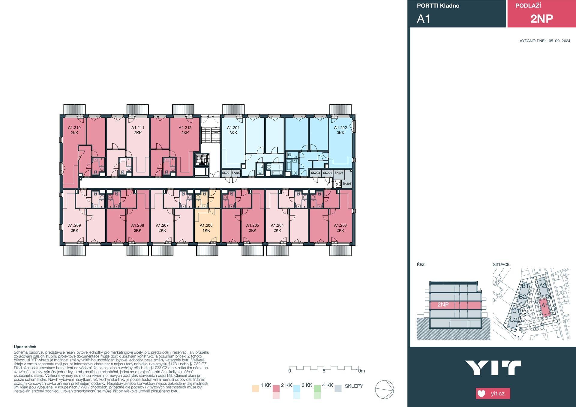 Byt o celkové ploše 74.1m² se nachází ve 2. nadzemním podlaží a díky rohové dispozici nabízí dostatek přirozeného světla i vysoký standard soukromí. Orientace do upraveného vnitrobloku se zelení zajišťuje klidné a harmonické bydlení mimo ruch města – jedna z nejžádanějších poloh v rámci celého projektu.