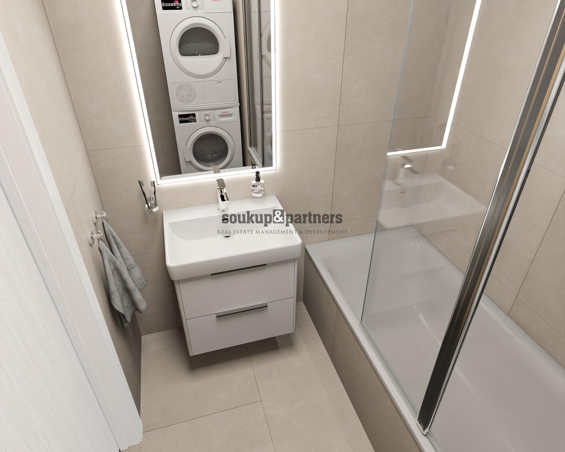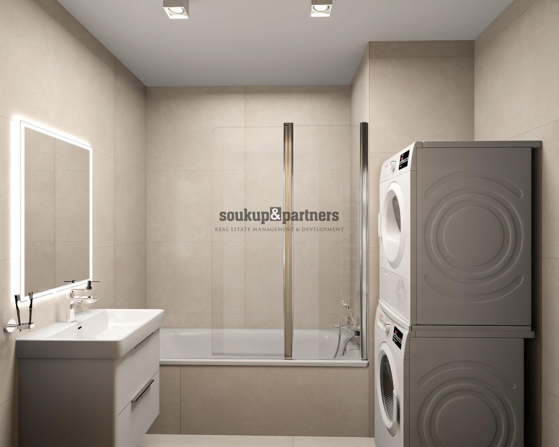 Byt se bude předávat ve vysokém standardu zahrnujícím velkoformátové obklady RAKO Betonico, odolné laminátové podlahy, kvalitní sanitu a baterie, bezpečnostní vstupní dveře v třídě 3, interiérové dveře výrobce Sapeli, izolační trojskla a přípravu na venkovní žaluzie. Konkrétně tento byt je zvolen jako vzorový pro VYŠŠÍ STANDARD VYBAVENÍ od developera, které je v cenně.