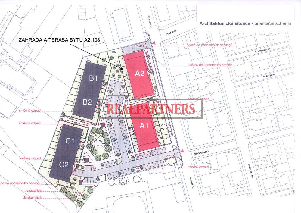 K bytu v ceně náleží sklep (1,60m2), ale je nutné dokoupit podzemní parkovací stání (15,60m2) za 450.000,- Kč, které v rámci projektu bylo přiděleno k bytové jednotce.