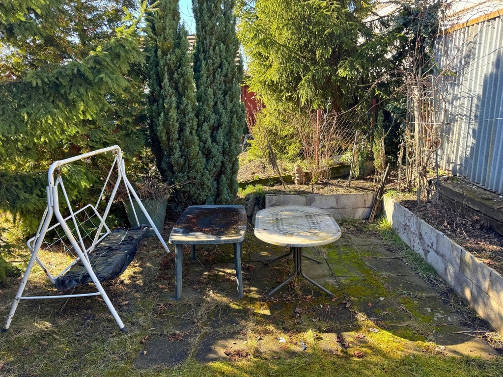 Hlavní předností této nabídky je právě slunná, na jih orientovaná zahrada, která nabízí dostatek soukromí, vzrostlé stromy, příjemné venkovní posezení a ideální prostor pro odpočinek, zahradničení i víkendový únik z města. Součástí je také okamžitě využitelné zázemí v podobě chaty, sklepa, dvou skleníků, zahradního nářadí, sudů na dešťovou vodu a venkovního WC.