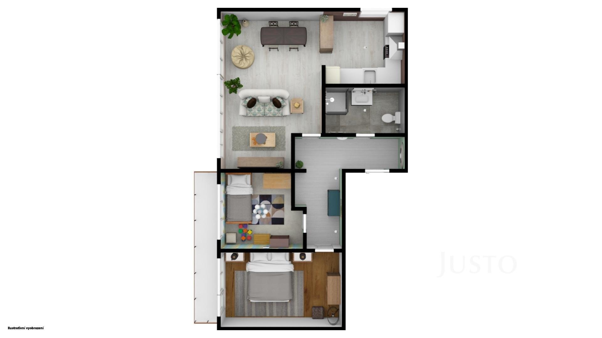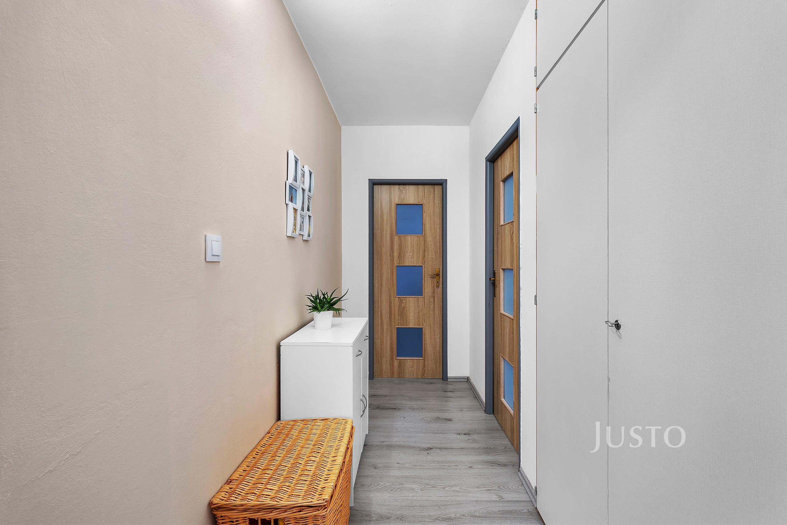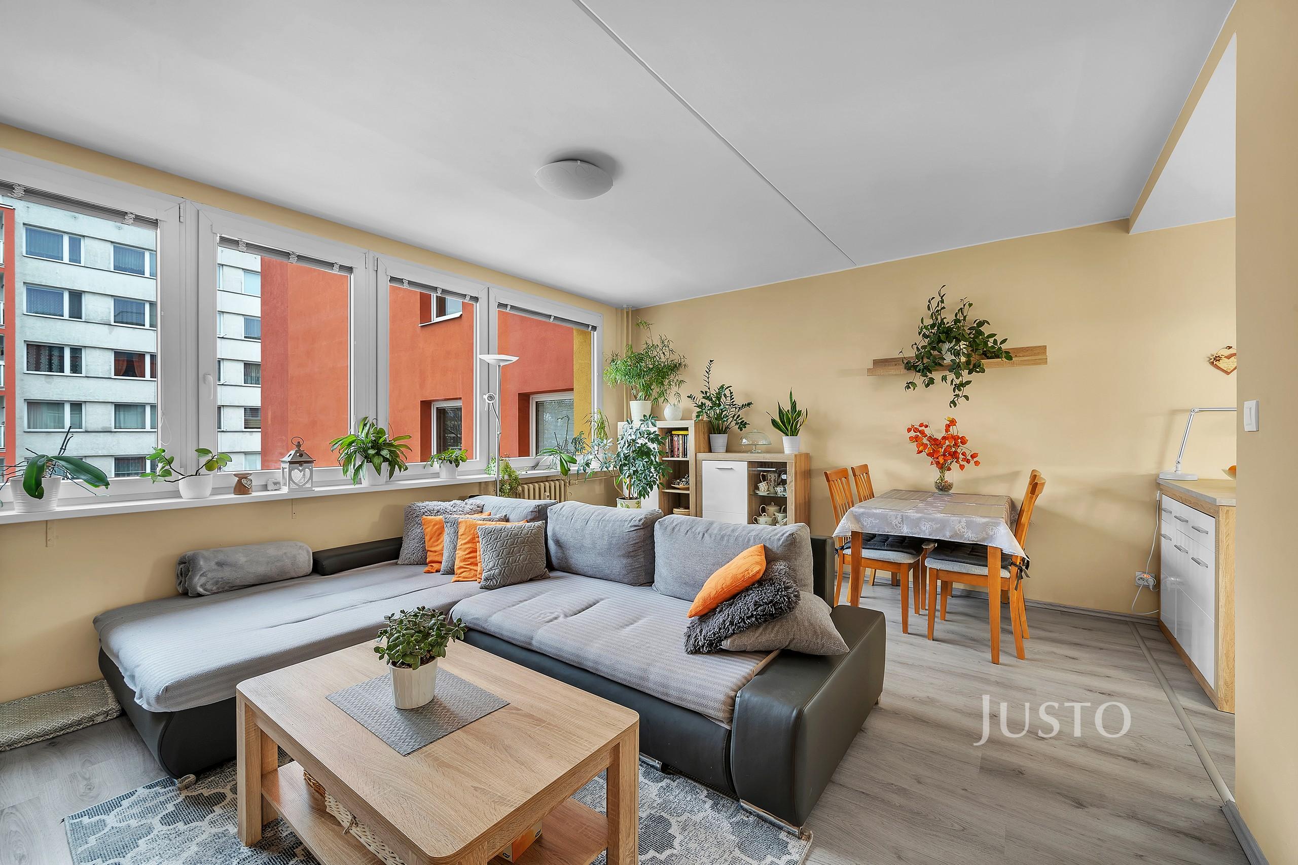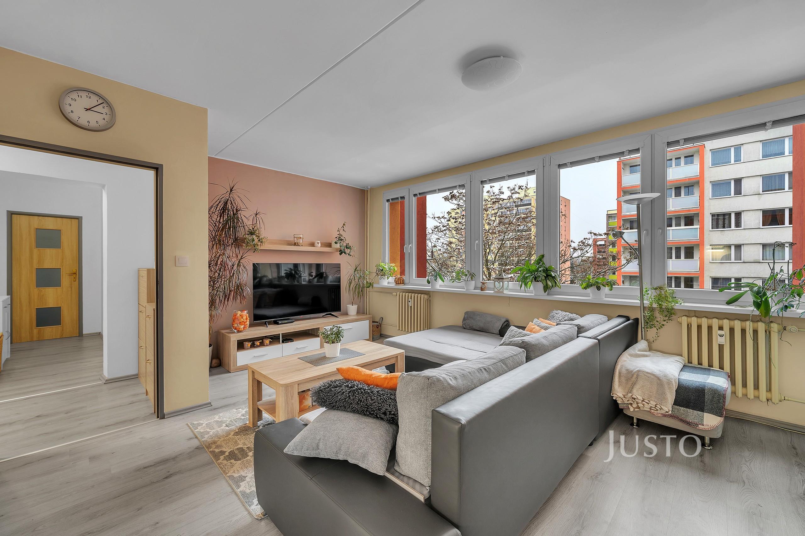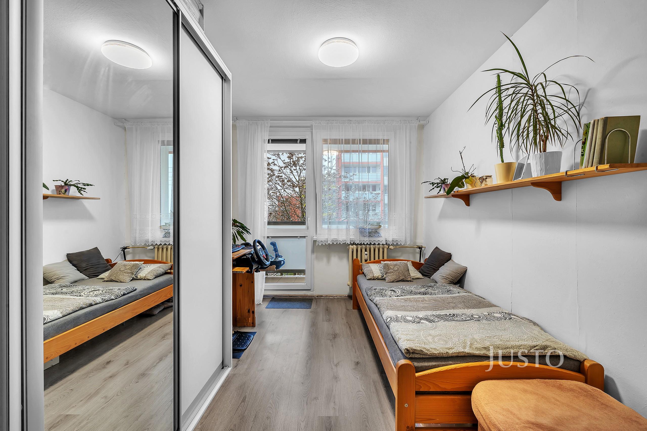 Byt je v osobním vlastnictví a nachází se v udržovaném a zatepleném domě s výtahem. Dispozice nabízí dvě neprůchozí ložnice, obývací pokoj propojený s jídelní částí a samostatnou kuchyň. Interiér působí velmi světlým a příjemným dojmem díky velkým plastovým oknům orientovaným do klidné části sídliště. Na lodžii je možné vstoupit z ložnice, což poskytuje další prostor pro odpočinek nebo posezení. Součástí bytu je také koupelna se sprchovým koutem a praktická komora. K jednotce náleží sklep s celkovou plochou 2 m².