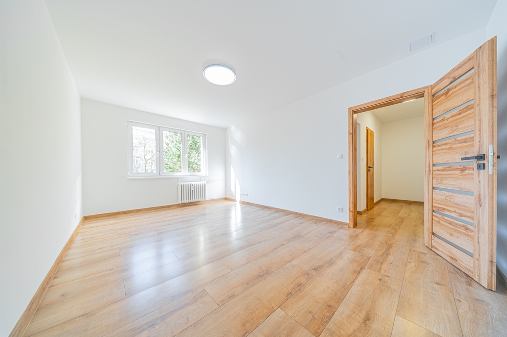 Byt je čerstvě po kompletní a precizní rekonstrukci a od jejího dokončení v něm dosud nikdo nebydlel. Při úpravách byl kladen důraz na kvalitní materiály, funkčnost a moderní design. V celém bytě jsou položeny nové laminátové podlahy v širokém formátu, instalovány nové dřevěné zárubně a interiérové dveře a osazeny nové vstupní dveře. Bytové jádro je vyzděné z tvárnic Ytong a v celém interiéru jsou provedeny sádrokartonové podhledy s integrovaným LED osvětlením. Součástí rekonstrukce byly také kompletně nové rozvody elektřiny, vody i odpadů. V bytě je k dispozici vysokorychlostní optický internet.