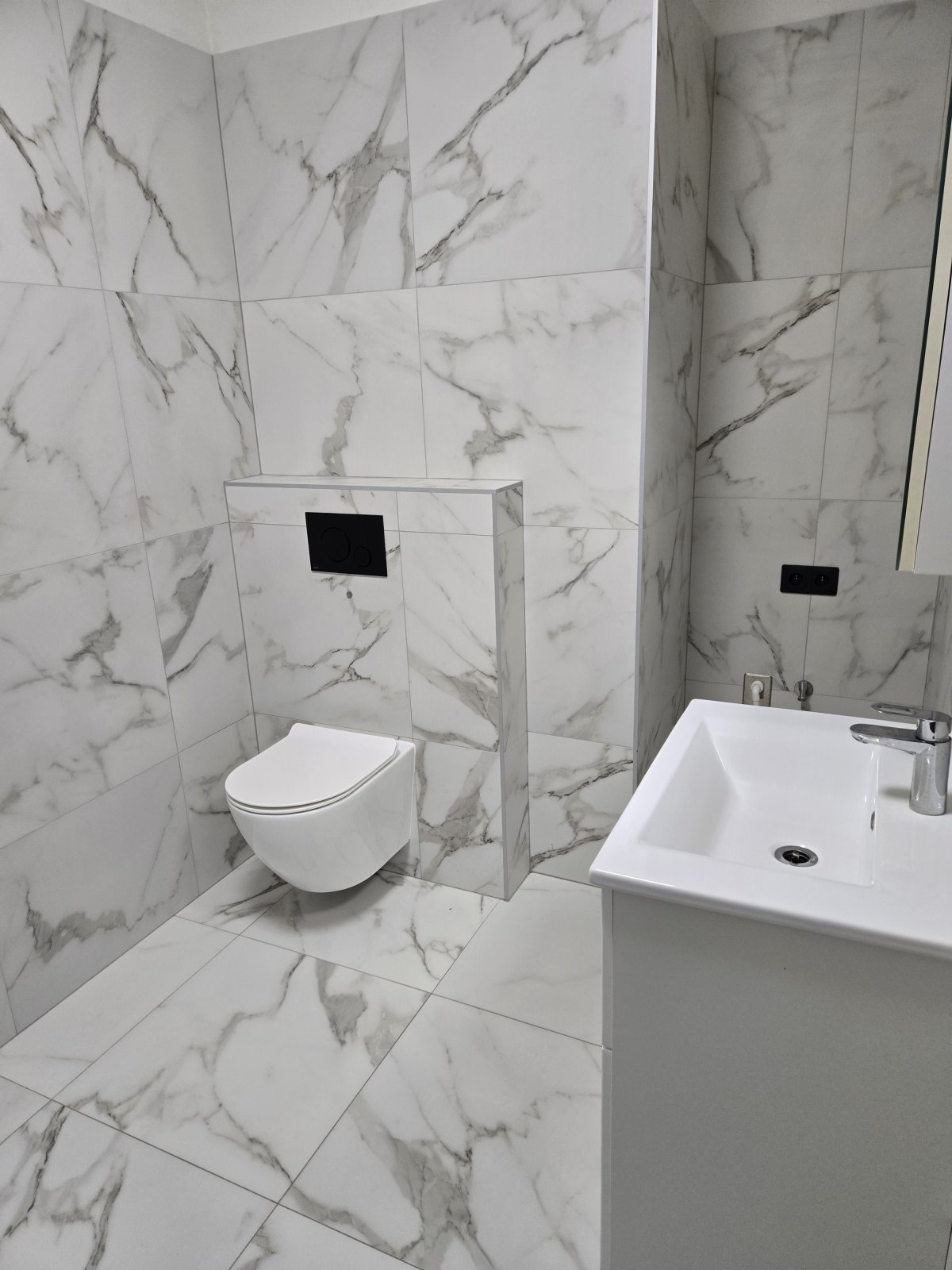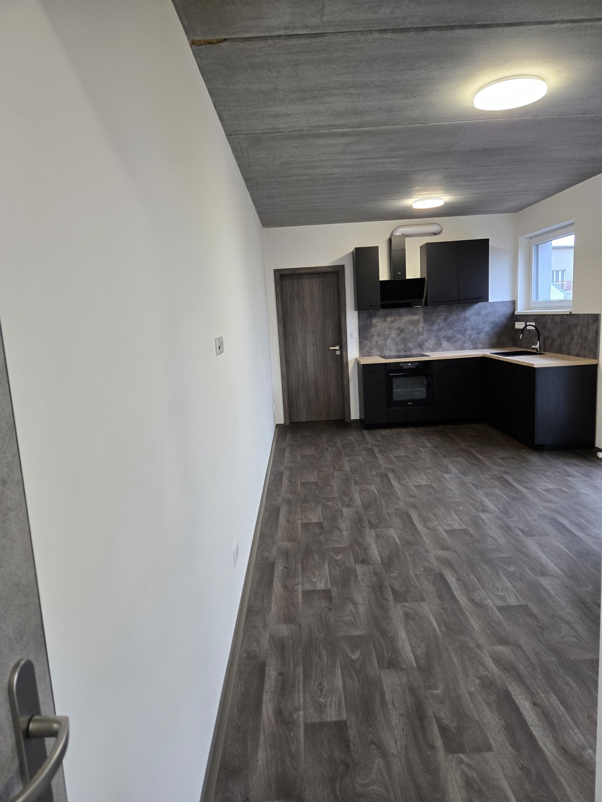 Moderní trendy bydlení - vinylové podlahy, přiznané betonové stropy, designové interiérové dveře, moderní svítidla, mramorové obložení koupelny, optické datové kabely, okenní trojskla.