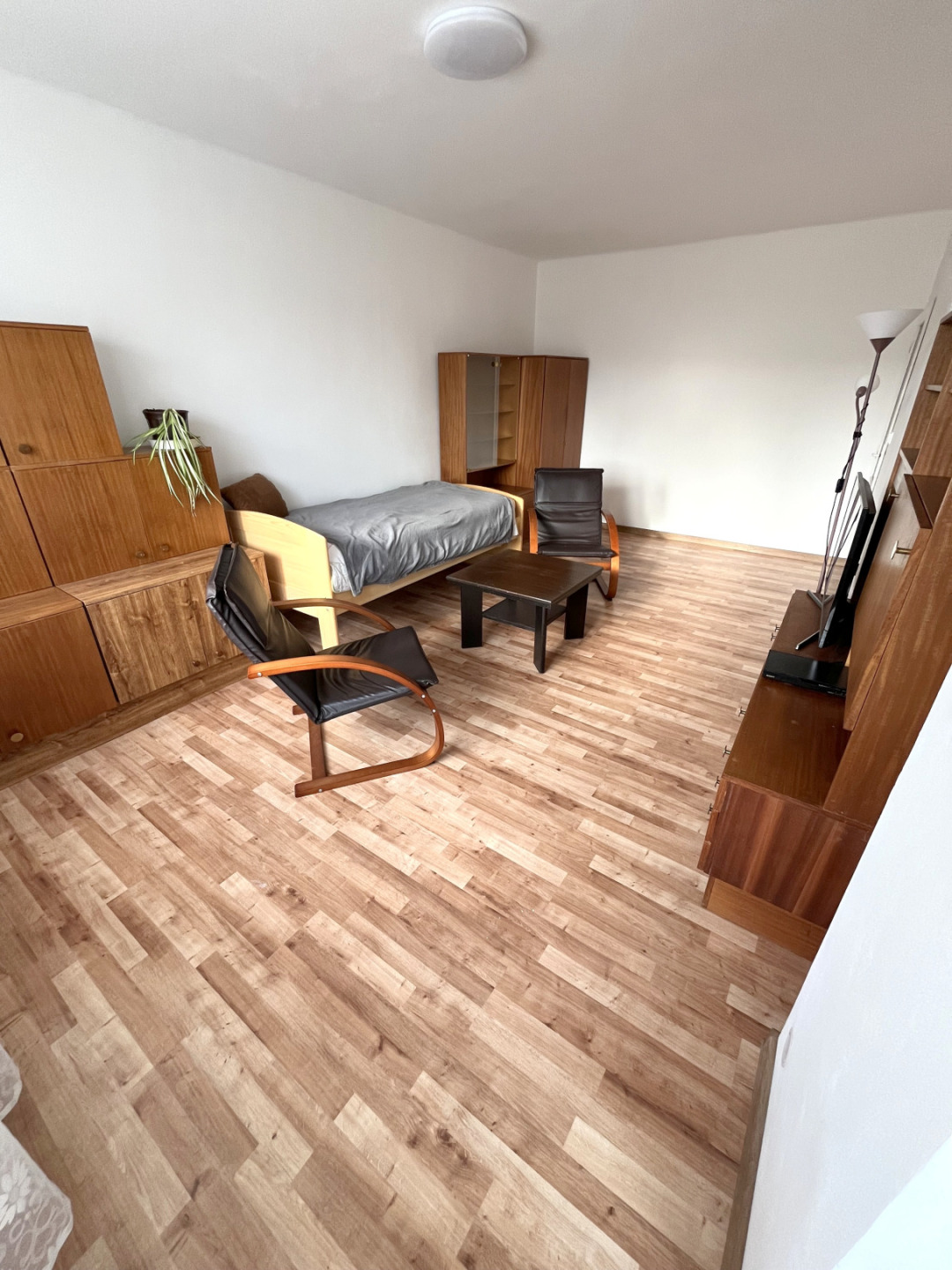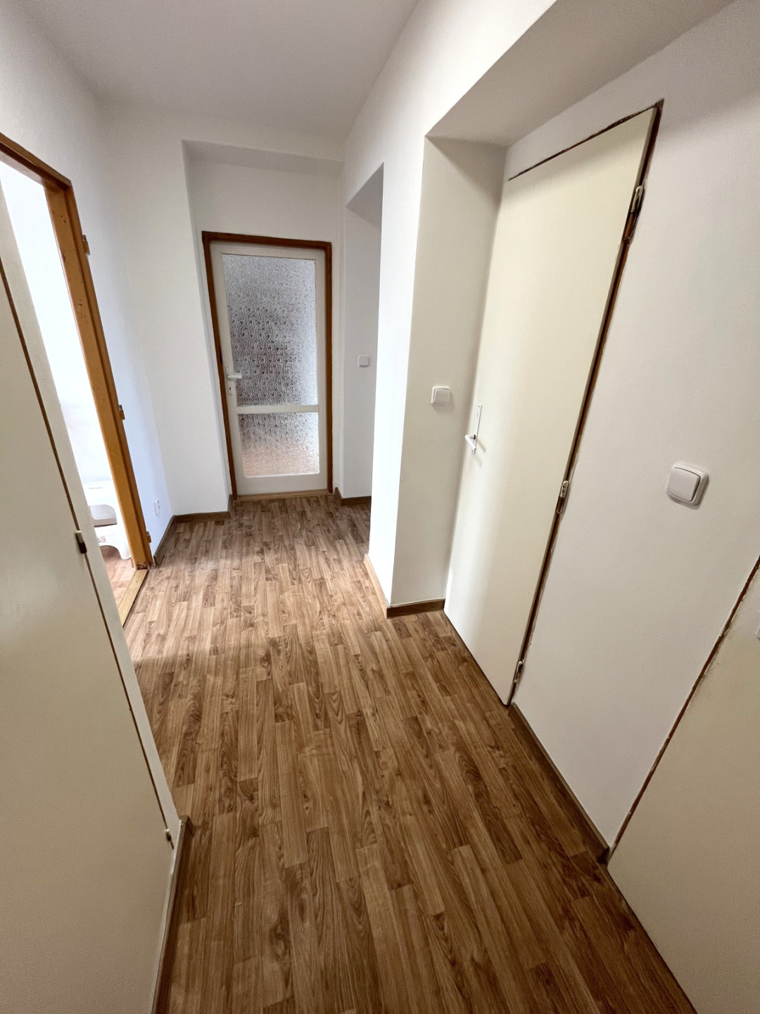 Vytápění je řešeno ústředním plynovým topením z kotelny v domě. Ohřev vody zajišťuje vlastní ele.bojler. V bytě zůstává kuchyňská linka.