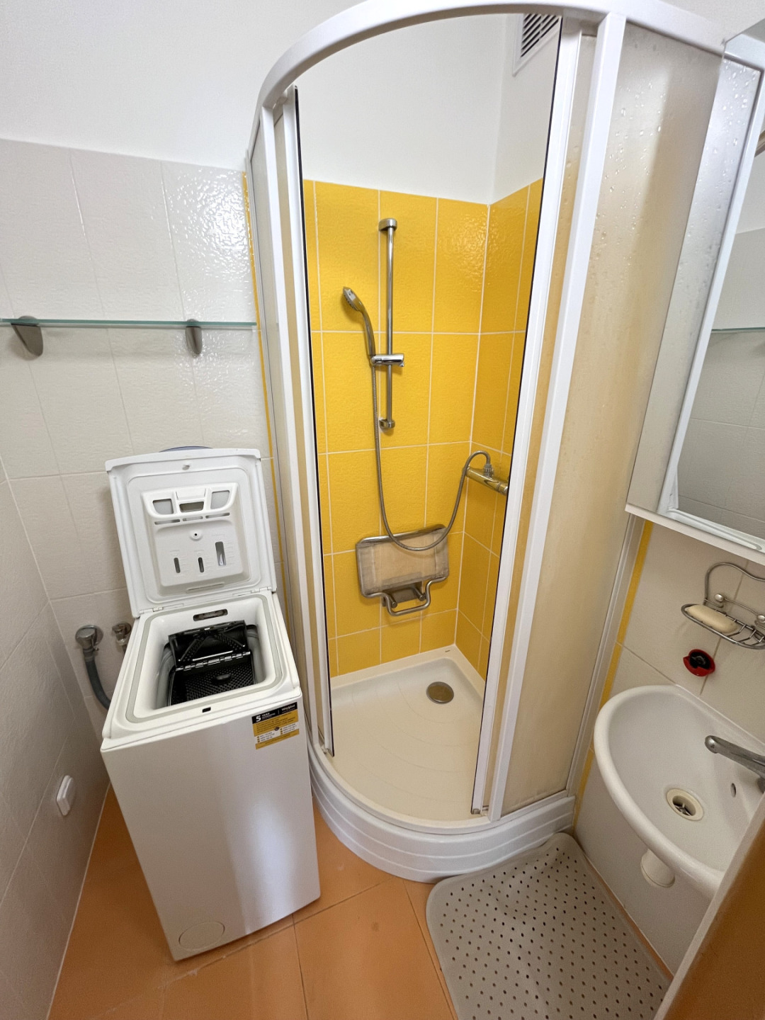 - vyzděná koupelna se sprchovým koutem a keramickou dlažbou, WC samostatné.