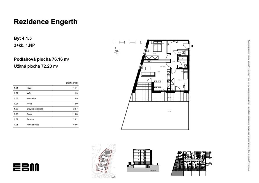 | Dispozice/podlahová plocha: | 3+kk/72 m² |