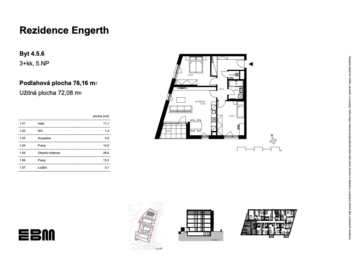 | Dispozice/podlahová plocha: | 3+kk/76 m² |