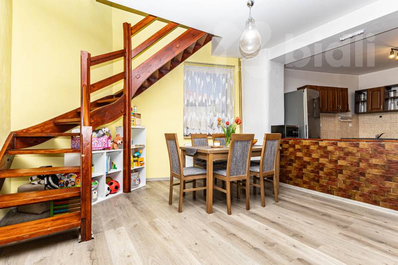 Ve výhradním zastoupení majitele nabízíme na prodej zajímavě řešený, prostorný mezonetový byt o velikosti 96 m2, nacházející se v 1. a 2. NP menšího zděného domu pouze se 3 bytovými jednotkami, ve velmi lukrativní, klidné rezidenční oblasti Kladna - Rozdělov.