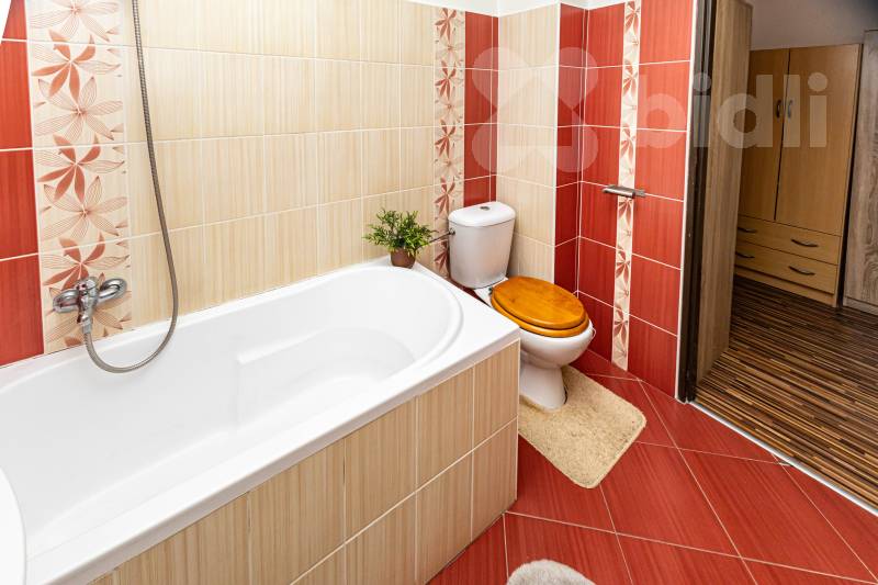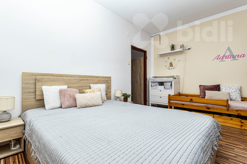 Poslední místností je ložnice (18 m2), z níž se přes menší chodbičku (3,5 m2) se šatními skříněmi, vchází do druhé koupelny s WC, vanou a umyvadlem.