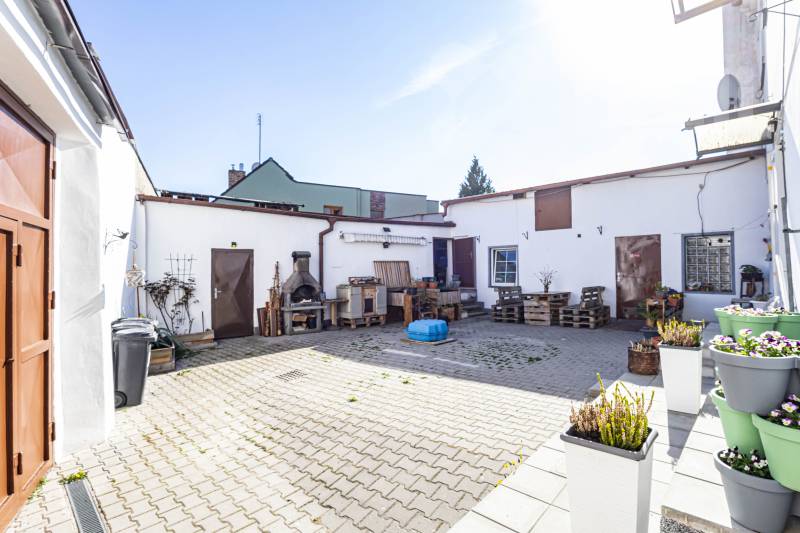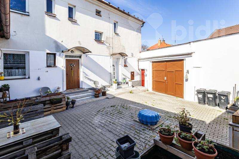K bytu náleží sklep a dají se využít další společné prostory, které jsou přístupné z dvorku, jako je kolárna, pro uložení věcí na ven, kůlna pro kutily. Dvůr sice není zatravněn, ale přesto skýtá možnost zde příjemně relaxovat po náročném dni, posedět s přáteli, či využít prostor k pěstování, nebo hraní si s dětmi.