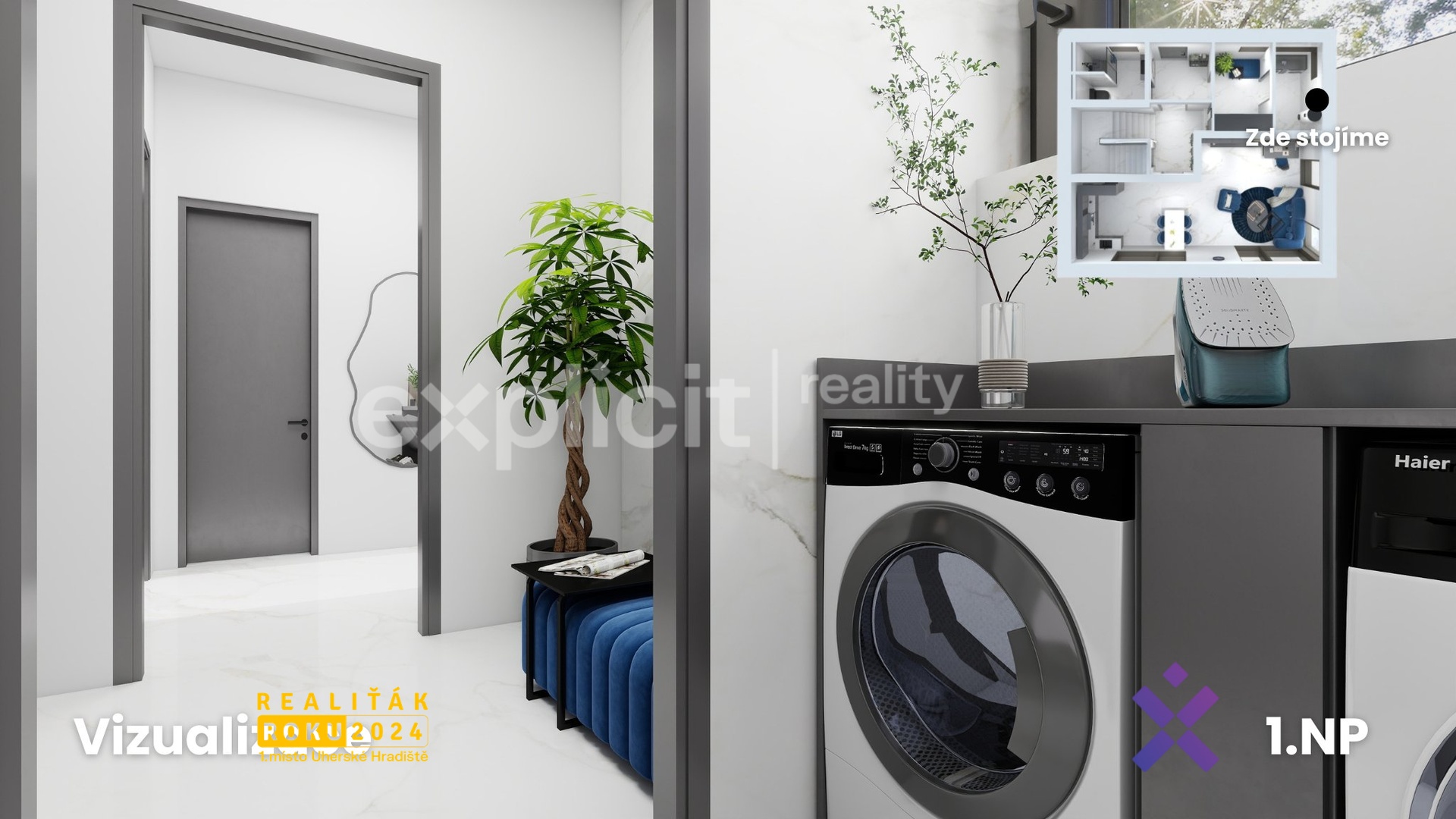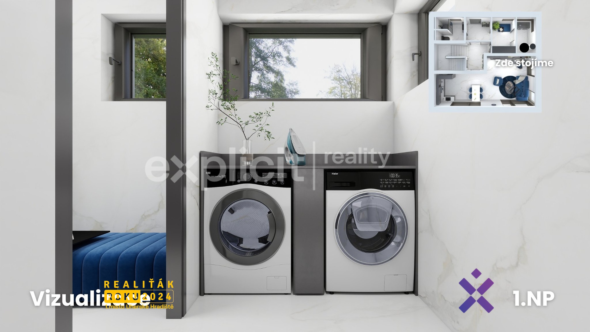 - každý dům má samostatné technické zázemí (pro pračku i sušičku), plynový kotel, rekuperaci i retenční nádrž