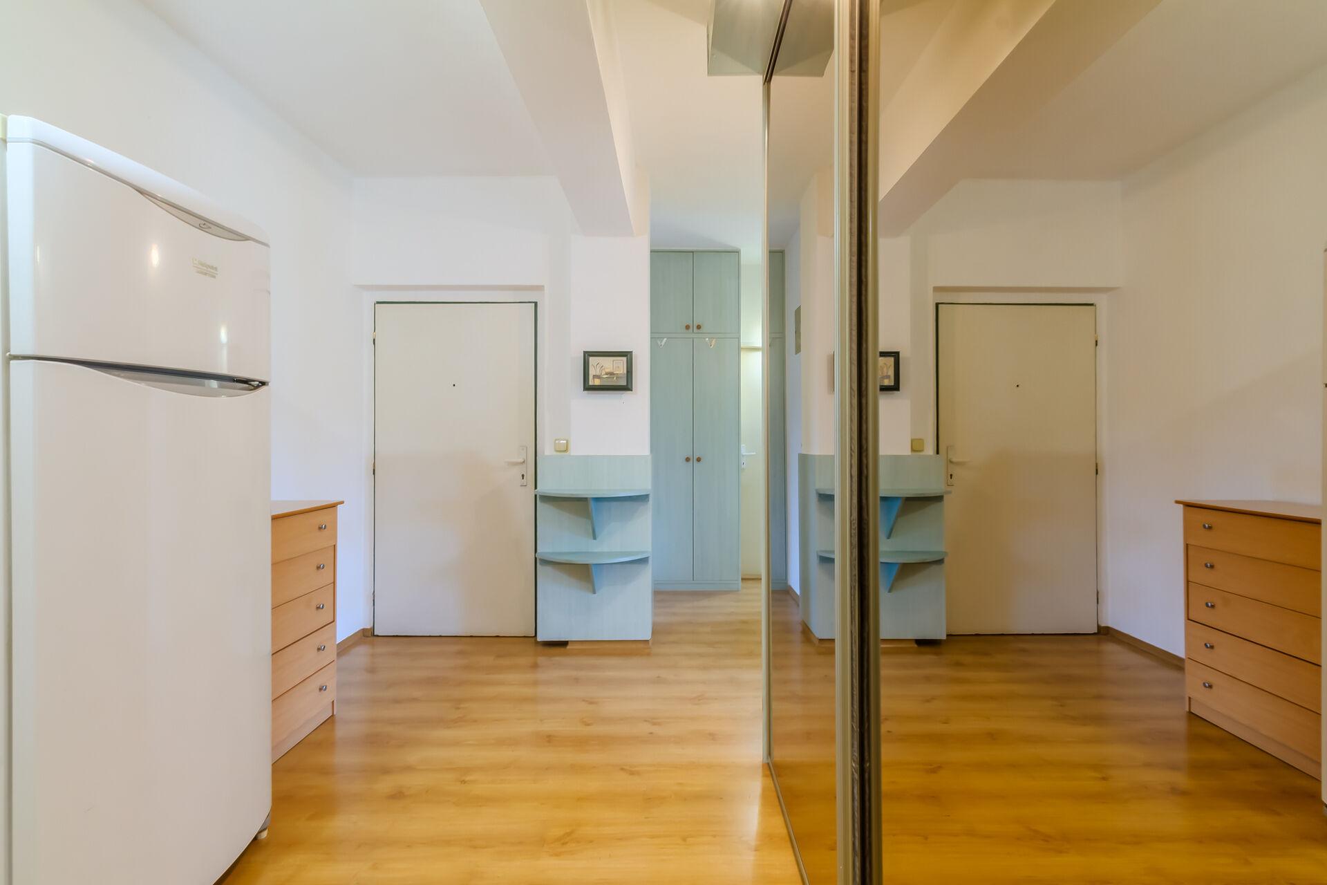 Na obývací prostor navazuje vstupní hala/předsíň (15,6 m²), která poskytuje dostatek prostoru pro vestavěné skříně, botníky i další úložná řešení. Z této centrální části je přístup do všech místností, což zajišťuje maximální soukromí jednotlivých členů domácnosti.