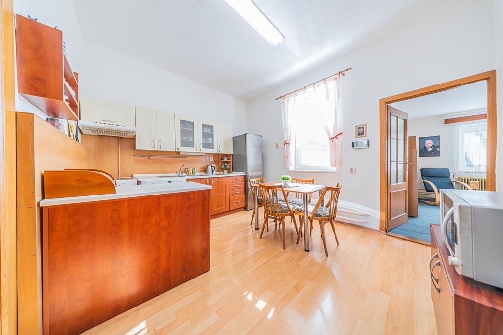 Nabízíme k prodeji dvougenerační cihlový rodinný dům ve vyhledávané rezidenční lokalitě Kladno – Rozdělov, v ulici U zastávky. Dům je ve velmi dobrém technickém stavu, je zateplený polystyrenem o tloušťce 10 cm a střecha je osazena krytinou Bramac. Nemovitost je technicky i funkčně rozdělena na dvě samostatné bytové jednotky, každá má vlastní plynoměr, vodoměr i elektroměr, a zároveň jsou k dispozici dva samostatné vstupy, což umožňuje pohodlné bydlení pro dvě generace, případně kombinaci bydlení a pronájmu.