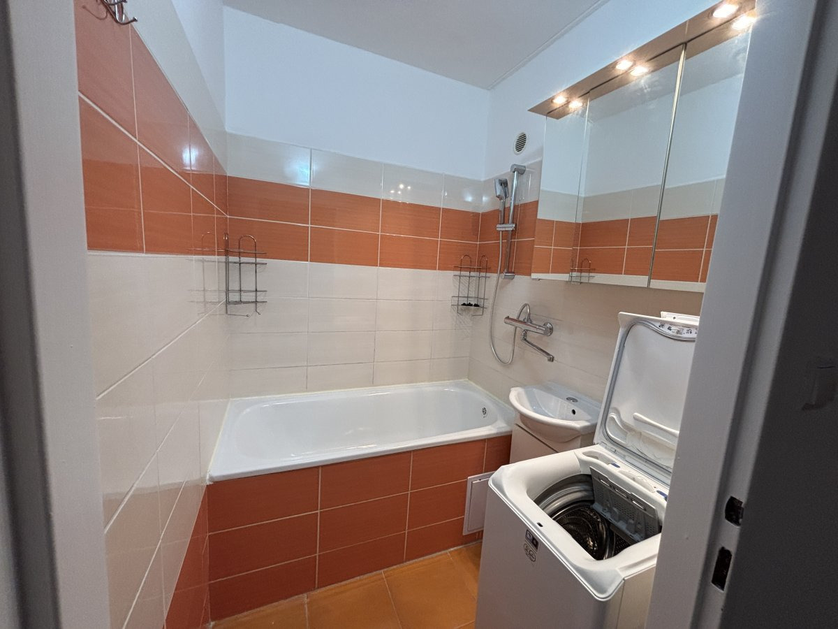 Interiér bytu je nabízen jako částečně vybavený, což vám dává ideální příležitost dotvořit si domov přesně podle vlastního vkusu a potřeb. Srdcem bytu je vkusná kuchyňská linka vybavená moderními spotřebiči včetně lednice s mrazákem, elektrické a mikrovlnné trouby, varné desky, digestoře a myčky nádobí. Navazující obývací část již disponuje pohodlnou sedací soupravou, jídelním koutem a úložným prostorem, takže se můžete ihned zabydlet. Koupelna s vanou nabízí prostor pro relaxaci a toaleta je pro větší komfort řešena samostatně.