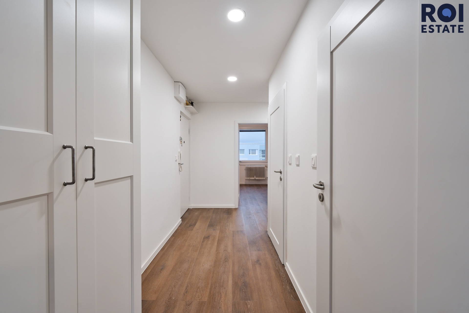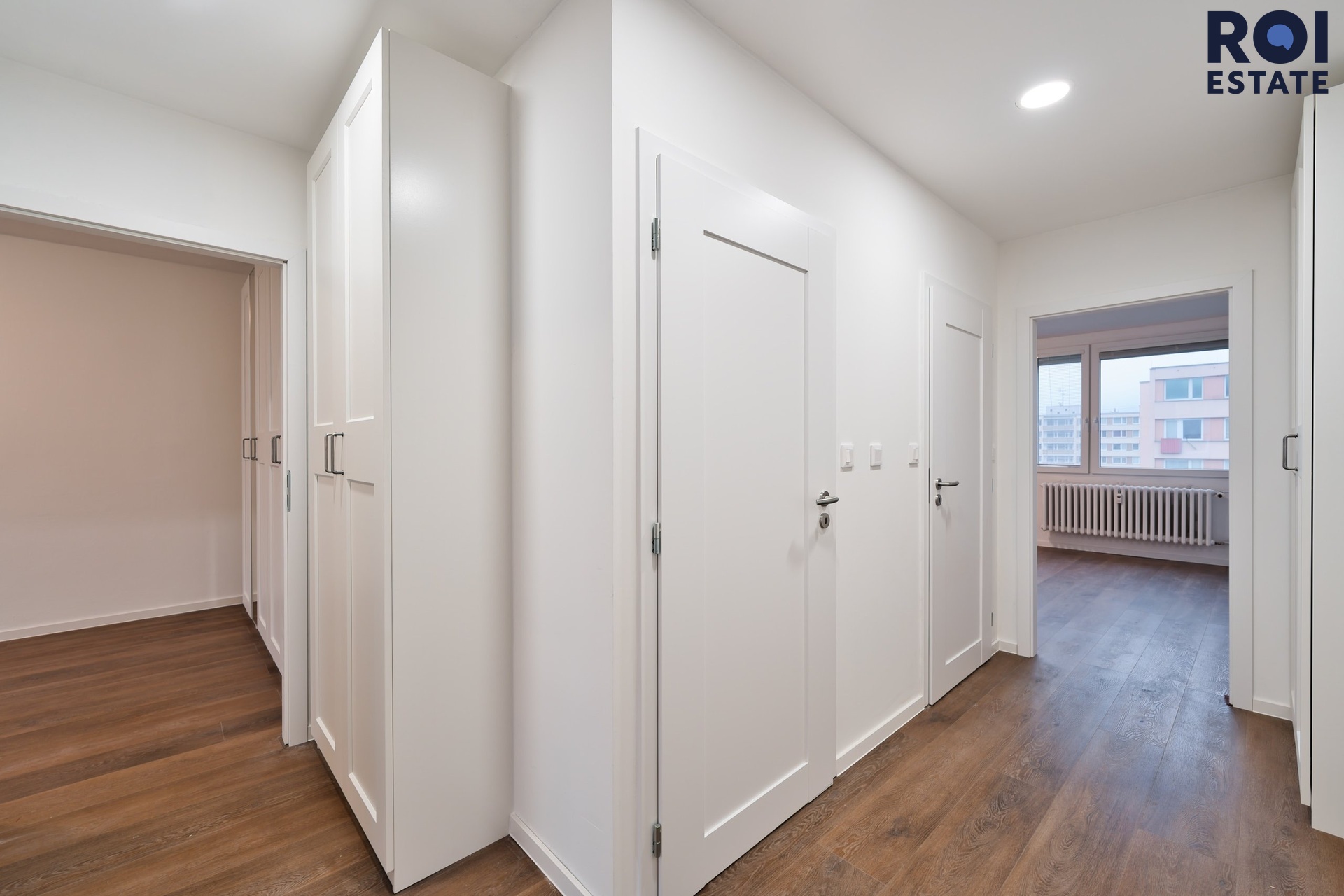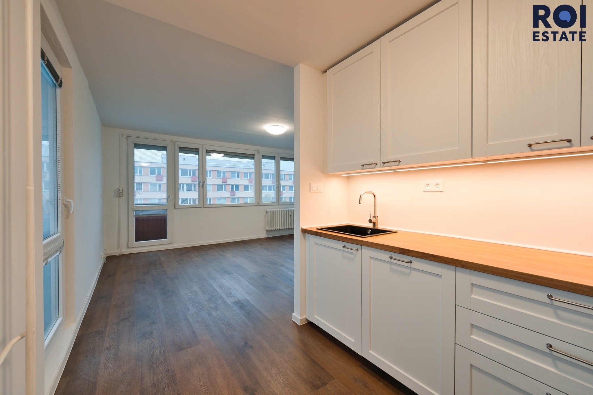 Byt je čistý, částečně zařízený – k dispozici kuchyňská linka se spotřebiči (myčka, trouba, sporák, lednice), vestavěné skříně a dostatek úložného prostoru. Výhodou v obývacím pokoji jsou venkovní rolety.