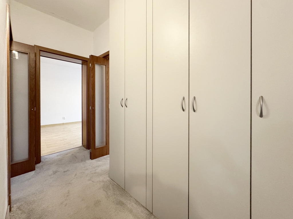 Obývací pokoj s kuchyní a lodžií má celkovou rozlohu 29 m2, pokoje potom 6,8, a 12 m2. Ve dvou dětských pokojích jsou koberce, v ložnici a obývacím pokoji plovoucí podlaha. Dva pokoje a předsíň disponují celkem třemi vestavěnými skříněmi. WC je samostatné, v koupelně je vana opatřená sprchovací zástěnou. V celém bytě jsou dřevěné zárubně a dveře s jednotným dekorem. Prostorná kuchyně s velkým oknem je opatřena kuchyňskou linkou ve tvaru U, je vybavena lednicí Liebherr, digestoří Zanussi, myčkou Bosch, el. troubou a sklokeramickou deskou Fagor. Obývací pokoj má lodžii orientovanou na jih. K bytu náleží samostatná garáž v přízemí domu o rozloze 19 m2.