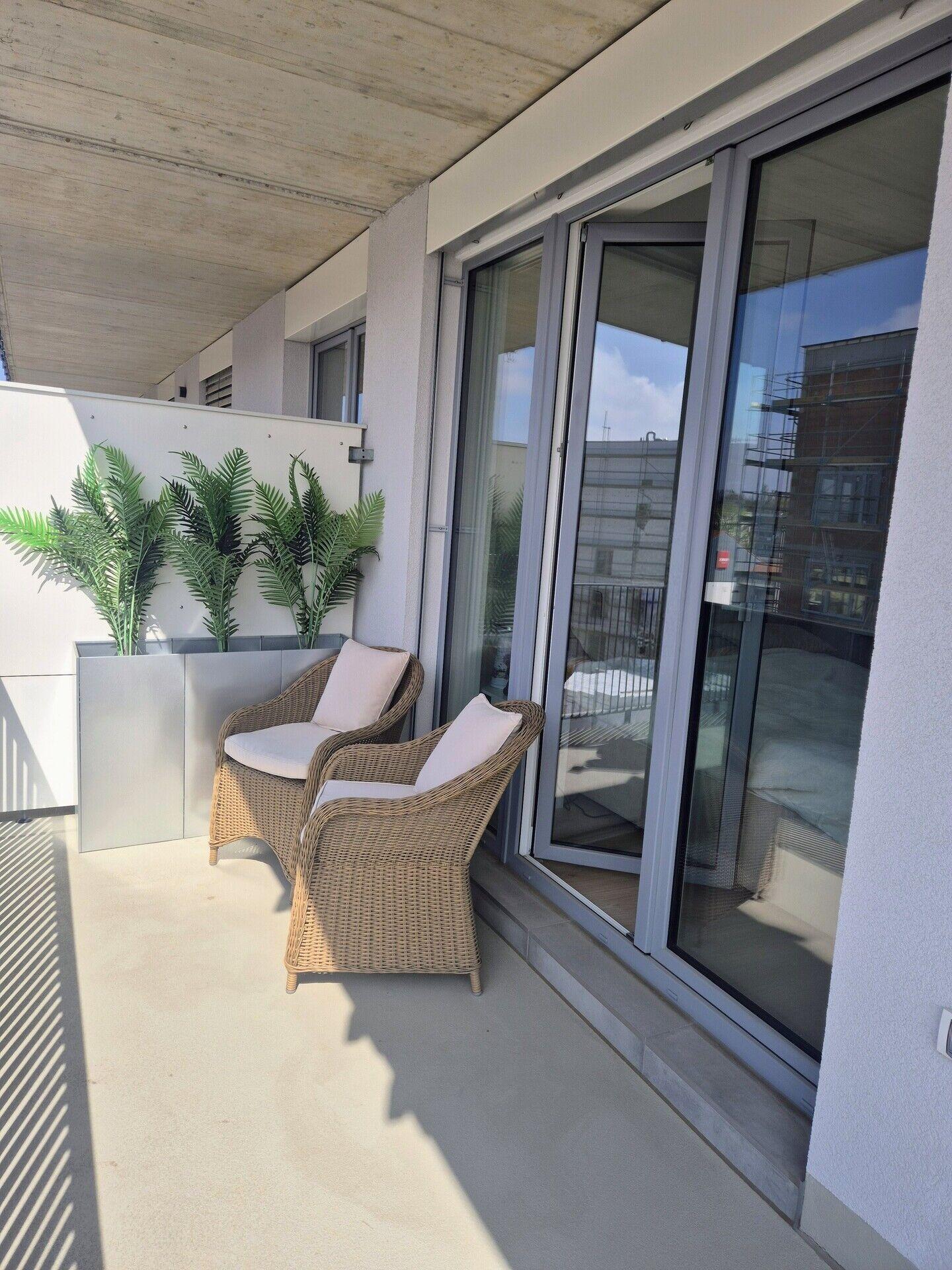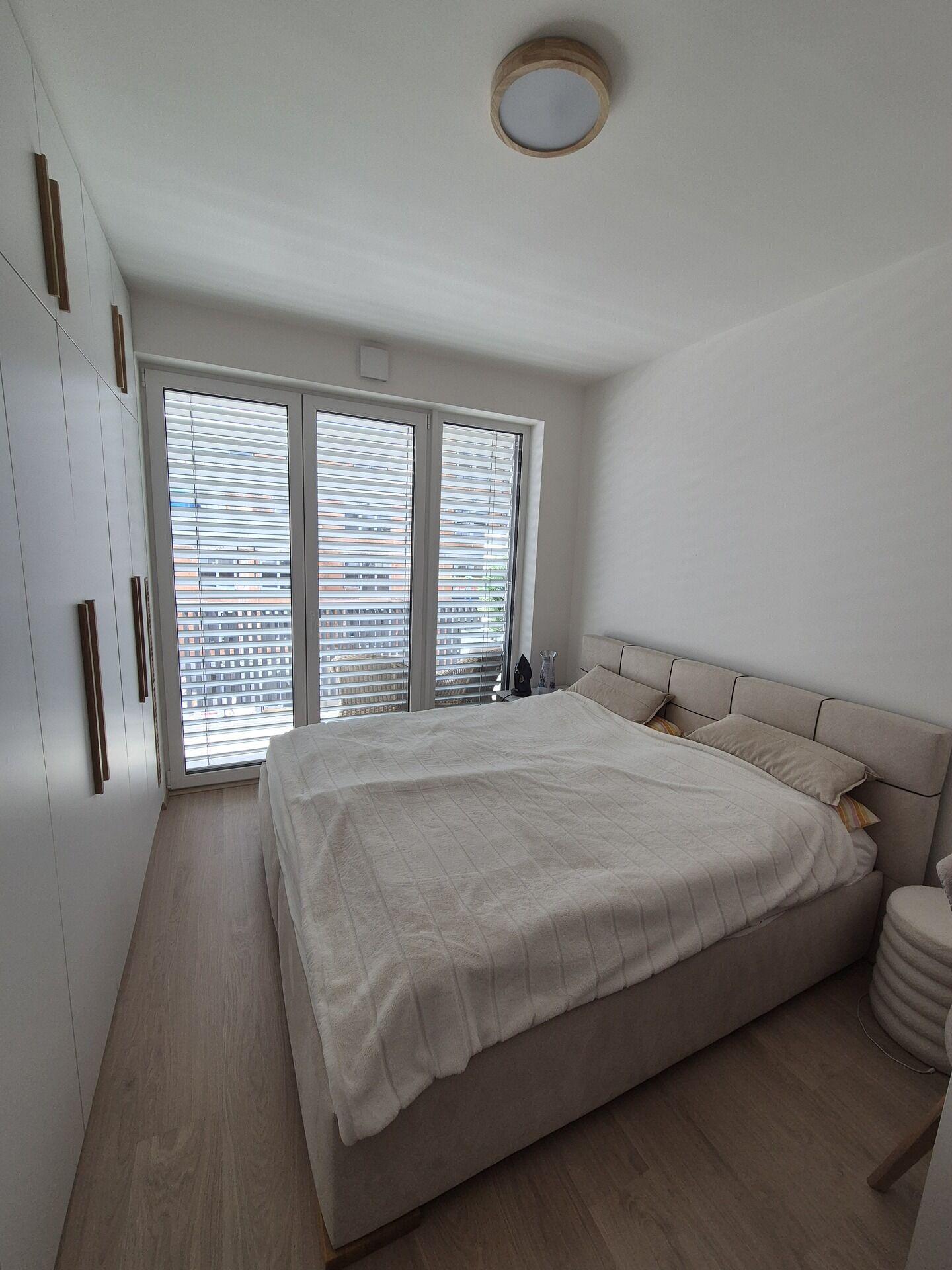 Nabízíme k pronájmu nadstandardní, světlý byt o dispozici 2+kk (42 m²), ke kterému náleží unikátní terasa (25 m²), balkon (12 m²) a vyhrazené parkovací stání v suterénu domu. Byt se nachází ve 4. patře novostavby, je kompletně zařízen kvalitním nábytkem a spotřebiči a připraven k okamžitému nastěhování.