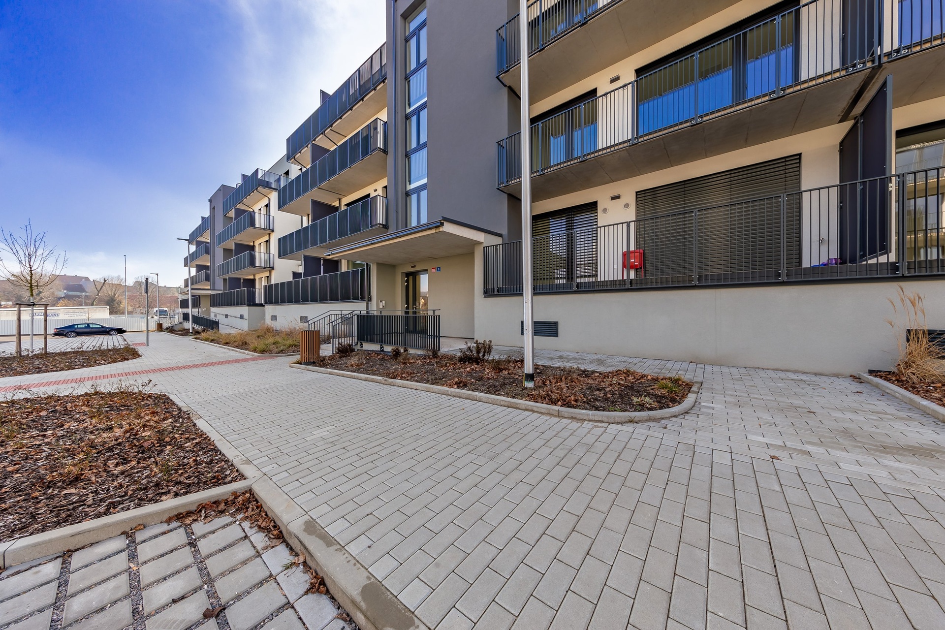 K bytu náleží garážové parkovací stání a sklepní kóje. Dům je vybaven výtahem. Moderní projekt zajišťuje komfortní a úsporné bydlení.