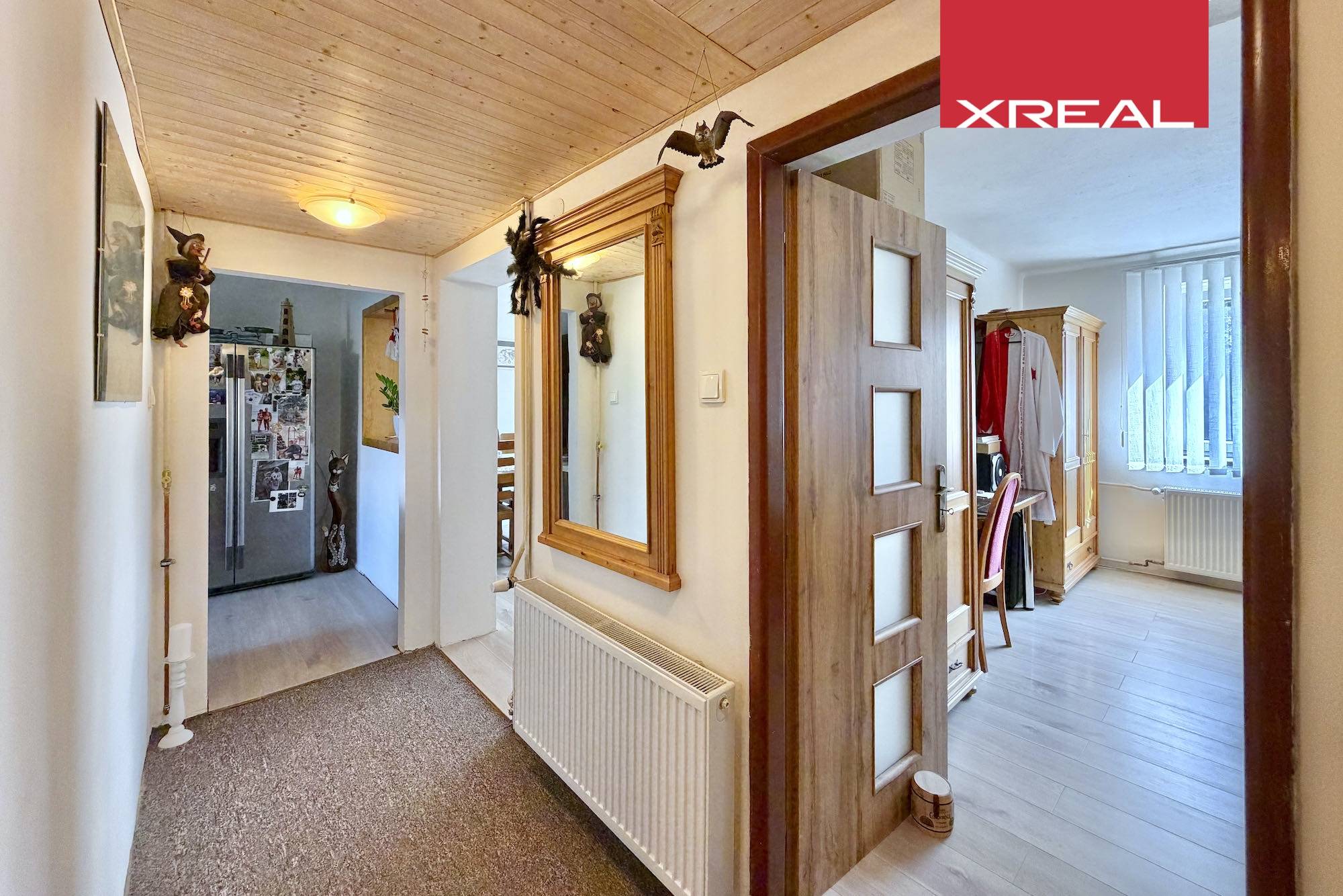 Krásný rohový pozemek, velký dvorek, praktická zahrádka před domem. Dvoupodlažní dům s 2 bytovými jednotkami z roku 1960, na východě navazující na sousední dům. Podlahová plocha domu je 140,7 m2, samostatné zděné garáže 13,4 m2, krytého sezení 13,6 m2 a zahradního skladu 8,0 m2. Oba byty 2+1 mají samostatné vchody ze dvora s bezpečnostními dveřmi, koupelnu, samostatné WC, zádveří, spíž, komoru a technickou místnost. Spodní byt je po rekonstrukci, horní v původním dobrém stavu. Oba byty jsou ihned použitelné. NAVÍC je možné využít i podkroví! Objekt je napojen na veřejný rozvod elektřiny, plynu, vody a kanalizace. Energetická náročnost budovy je třídy G. Dům má centrální vytápění a ohřev vody plynovým kondenzačním kotlem.