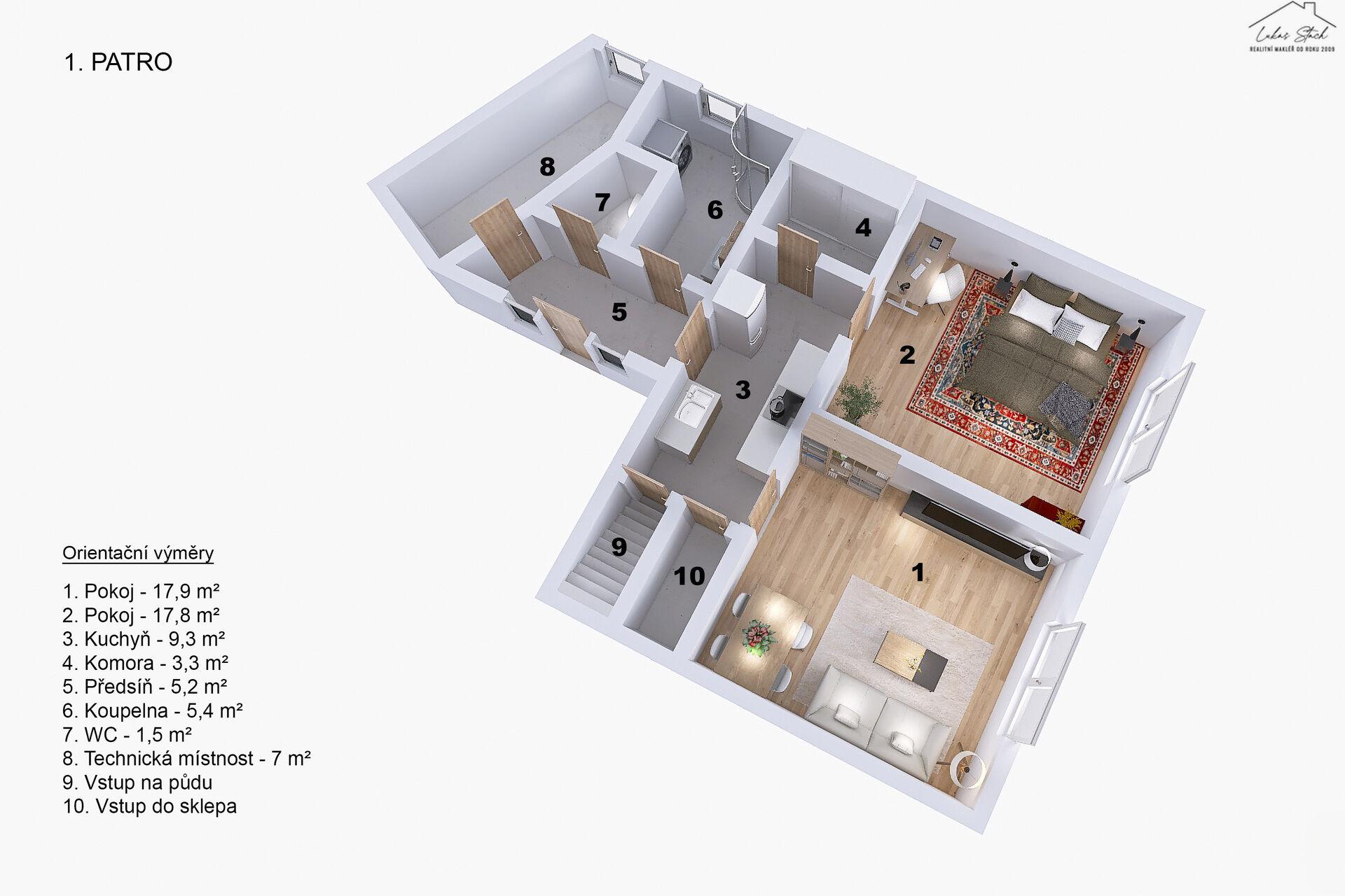Nechybí ani menší sklep (cca 9 m²), vhodný pro uskladnění trvanlivých potravin, zeleniny a zavařenin.
