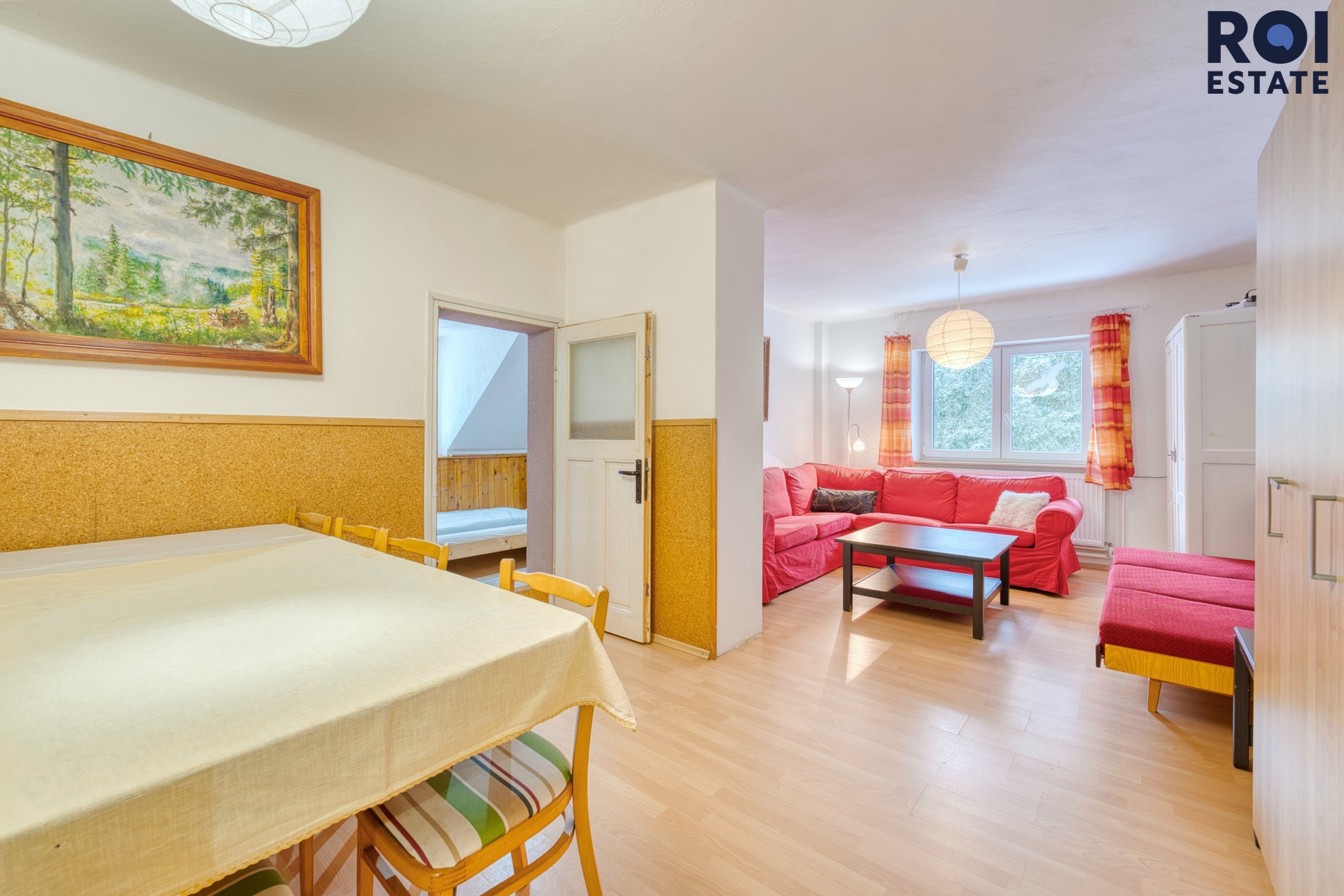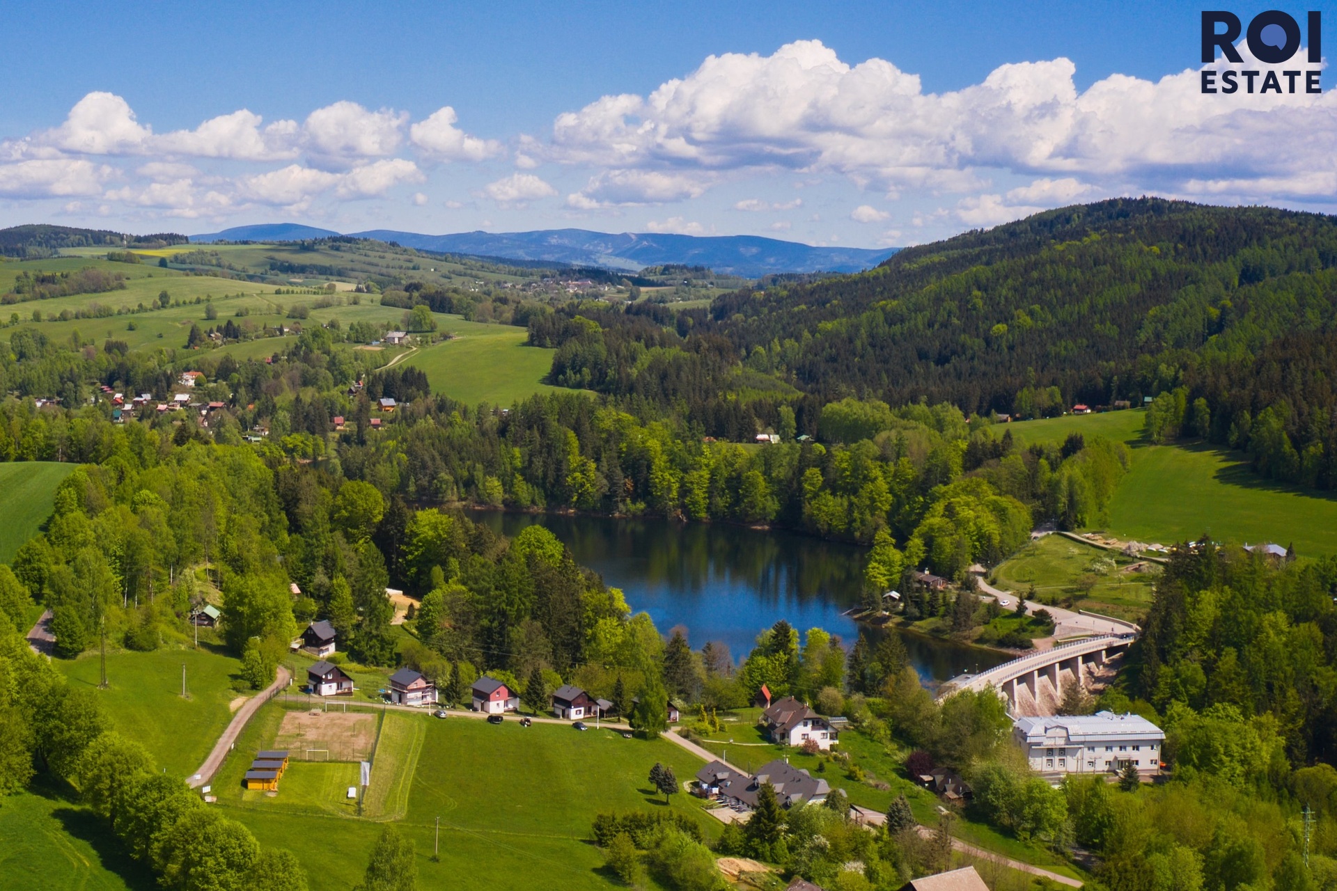 Jen 500 metrů od civilizace, na klidném místě obklopeném přírodou, se nachází pozemek se zpracovanou studií pro výstavbu výjimečného ubytování s pozemkem o rozloze téměř 10 000 m². V současné době zde již stojí funkční rodinný dům s pensionem, který pohodlně ubytuje až šest rodin, které mají k dispozici dvě plně vybavené kuchyně a několik koupelen. Součástí je také prostorný byt 3+kk s terasou, kde mohou bydlet samotní majitelé – ideální pro spojení podnikání s vlastním bydlením.