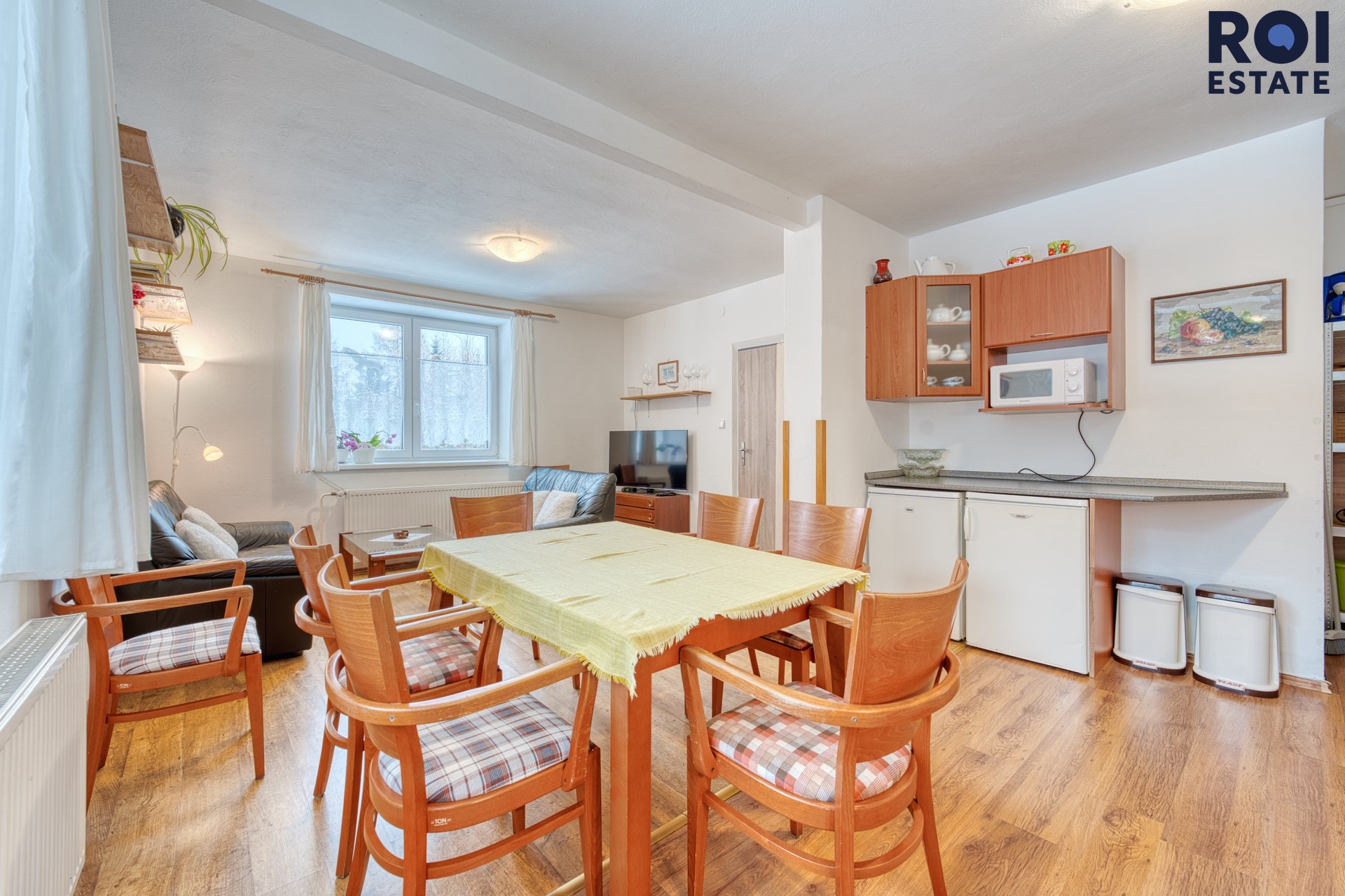 Jen 500 metrů od civilizace, na klidném místě obklopeném přírodou, se nachází pozemek se zpracovanou studií pro výstavbu výjimečného ubytování s pozemkem o rozloze téměř 10 000 m². V současné době zde již stojí funkční rodinný dům pensionem který pohodlně ubytuje až šest rodin, které mají k dispozici dvě plně vybavené kuchyně a několik koupelen. Součástí je také prostorný byt 3+kk s terasou, kde mohou bydlet samotní majitelé – ideální pro spojení podnikání s vlastním bydlením.