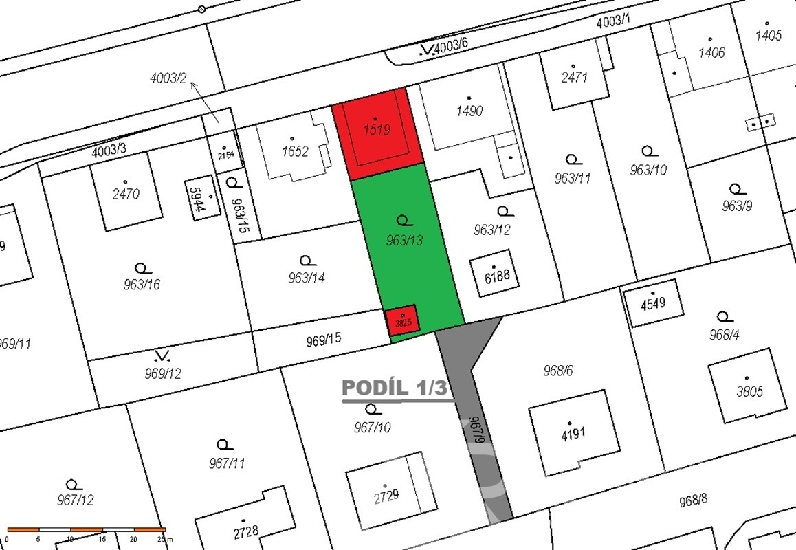 Pozemky: celková výměra 467 m², z toho: stavební parcela 148 m², garáž 20 m², zahrada 299 m².