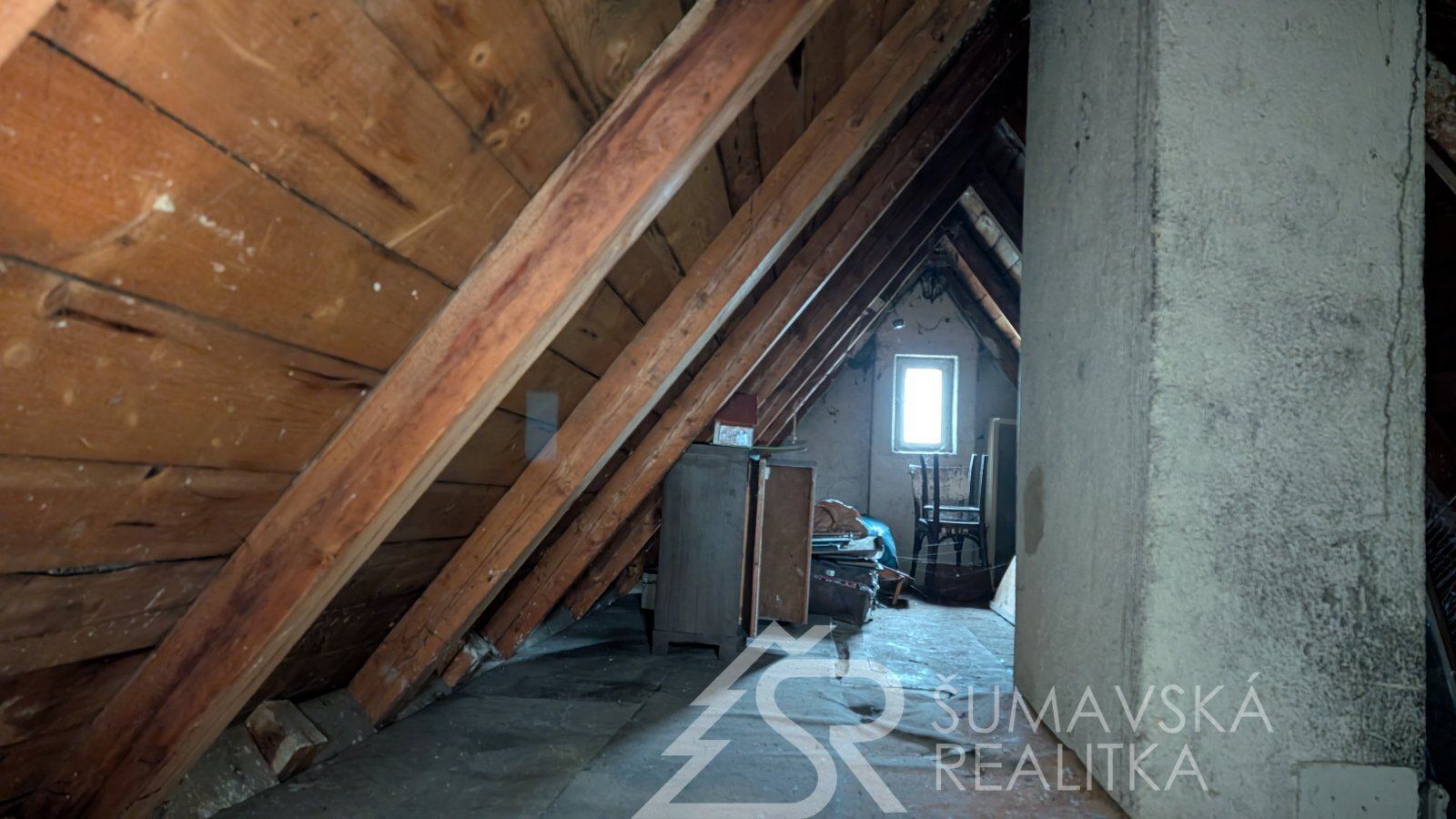V 1. patře jsou osazena plastová okna (2015). Střecha je krytá eternitem.