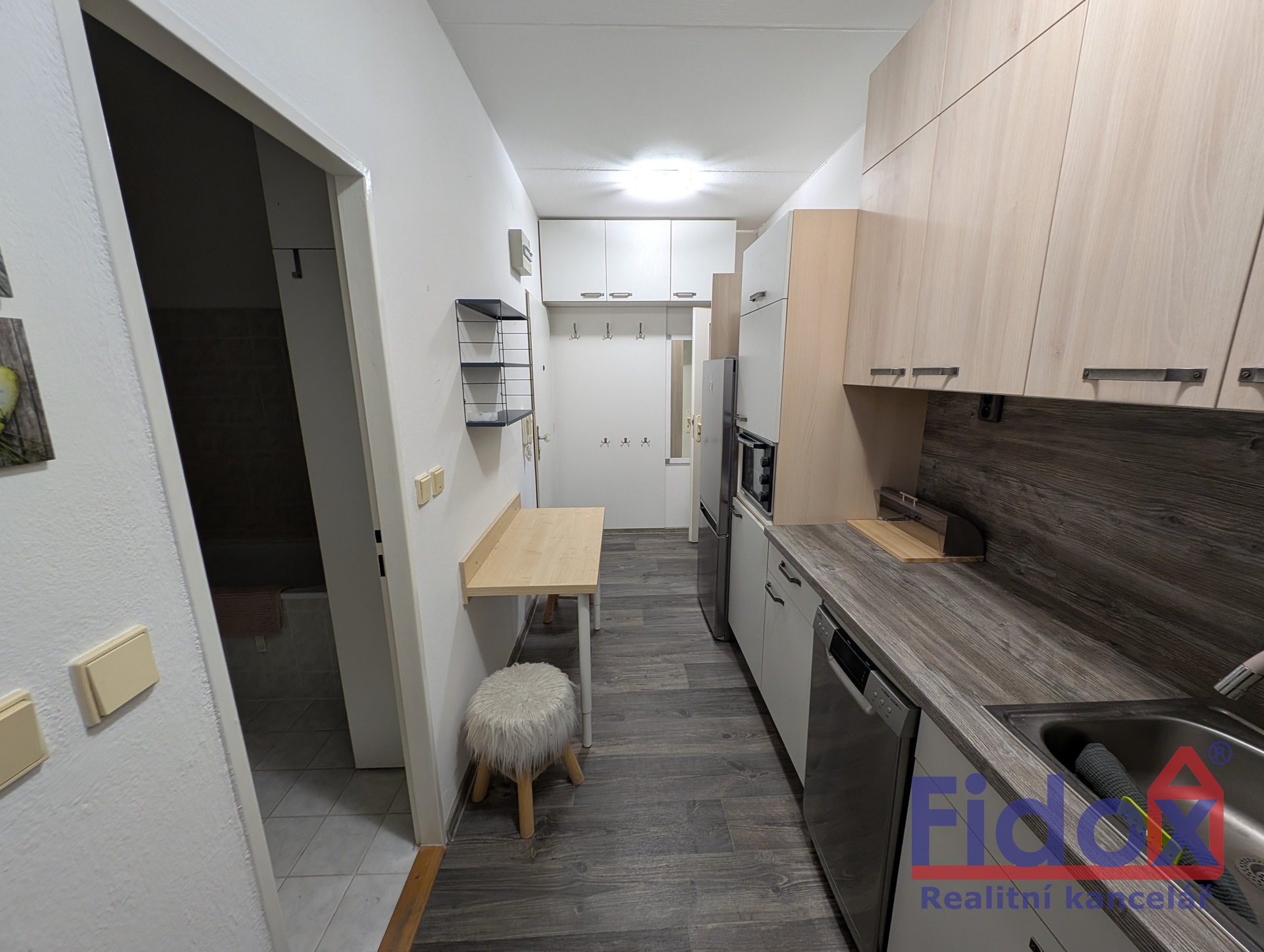 - Prostorná chodba s kuchyňskou linkou vybavený myčkou nádobí, elektrickým sporákem a troubou