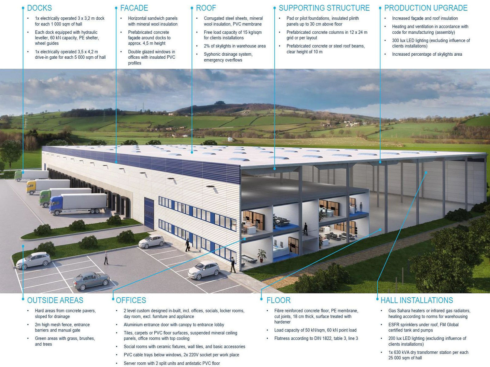 - kancelářské a sociální zázemí dle požadavku,