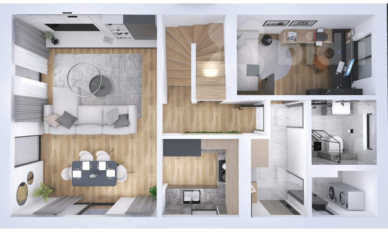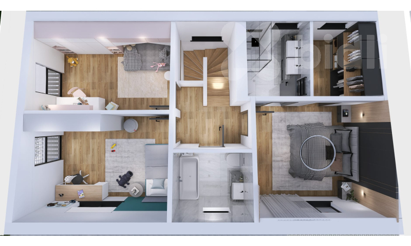 Projekt počítá s komfortním dispozičním řešením - zastavěná plocha 83,2 m2, podlahová plocha 140,6 m2, prakticky navržené podlaží s obytnou i technickou částí a podkroví, které poskytne dostatek prostoru celé rodině. Jižní orientace pozemků zaručí dostatek světla a příjemnou atmosféru v domě i na zahradě.