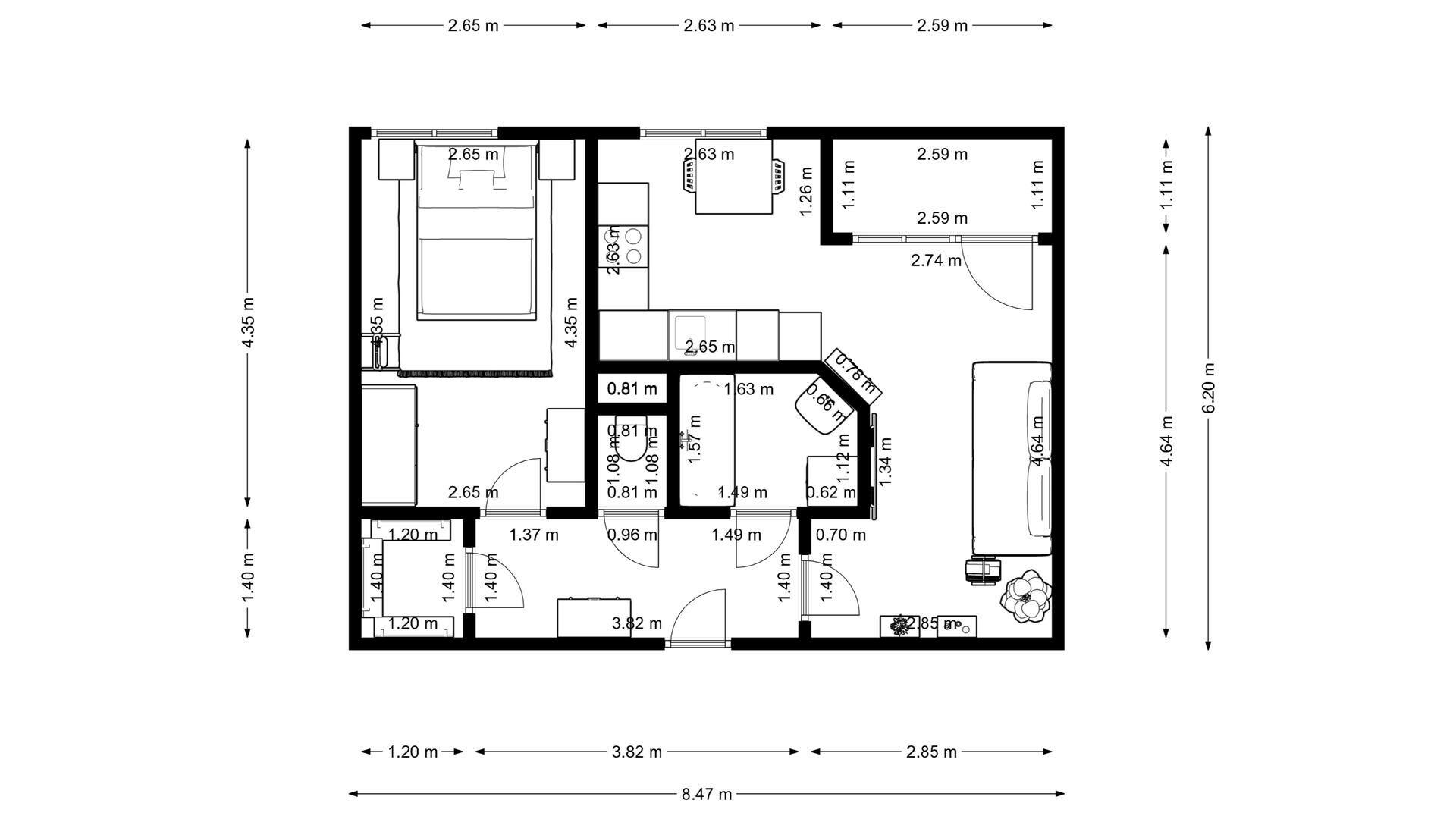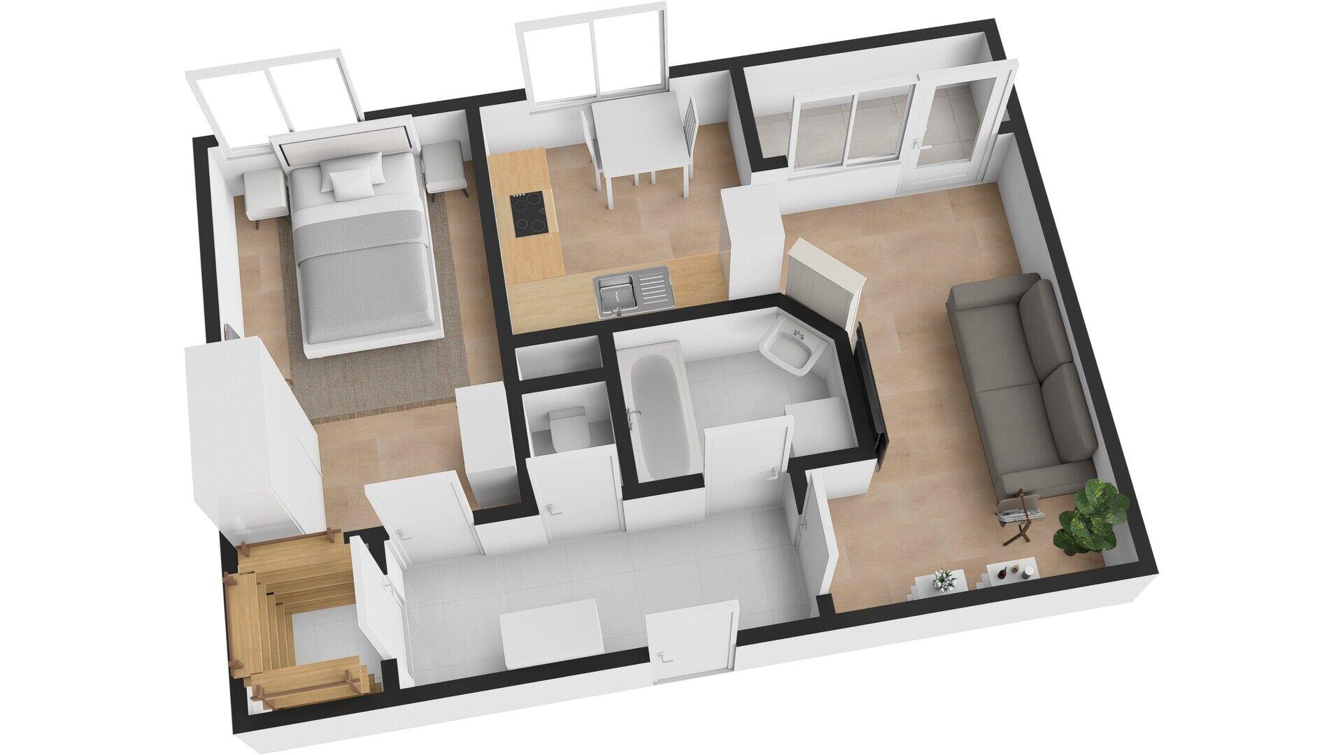 | Dispozice/podlahová plocha: | 2+kk/44 m² |