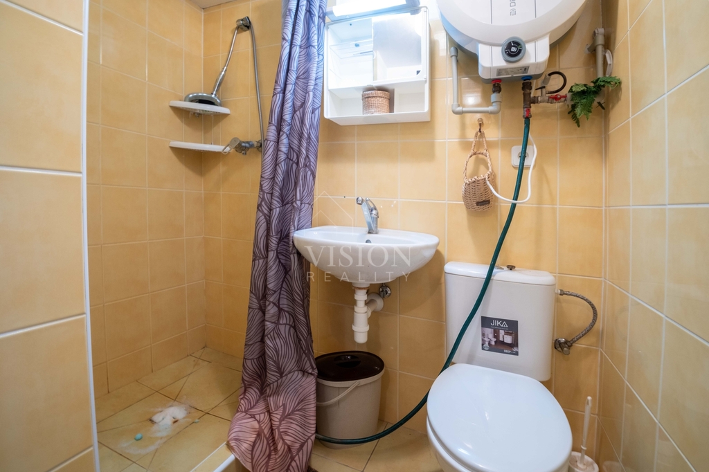 1. nadzemní podlaží: obývací pokoj s kuchyňským koutem, koupelna se sprchovým koutem a WC, balkon s krásným výhledem na řeku.