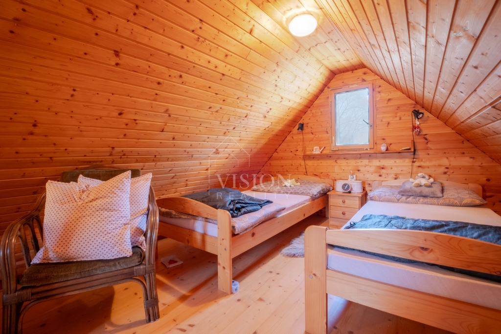Chata prošla rekonstrukcí – má nové opláštění, novou střechu, zateplení a nové dřevěné obložení v podkroví.