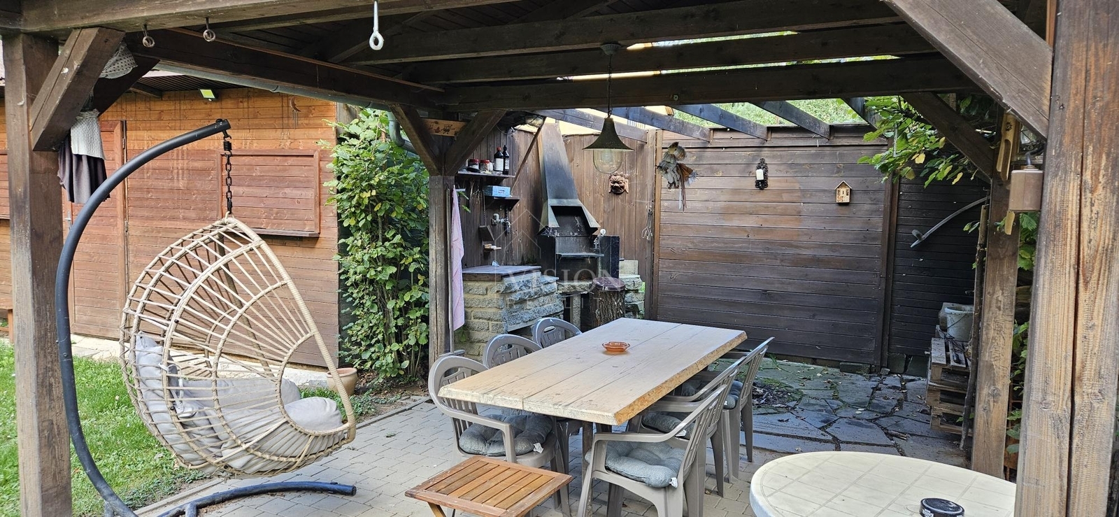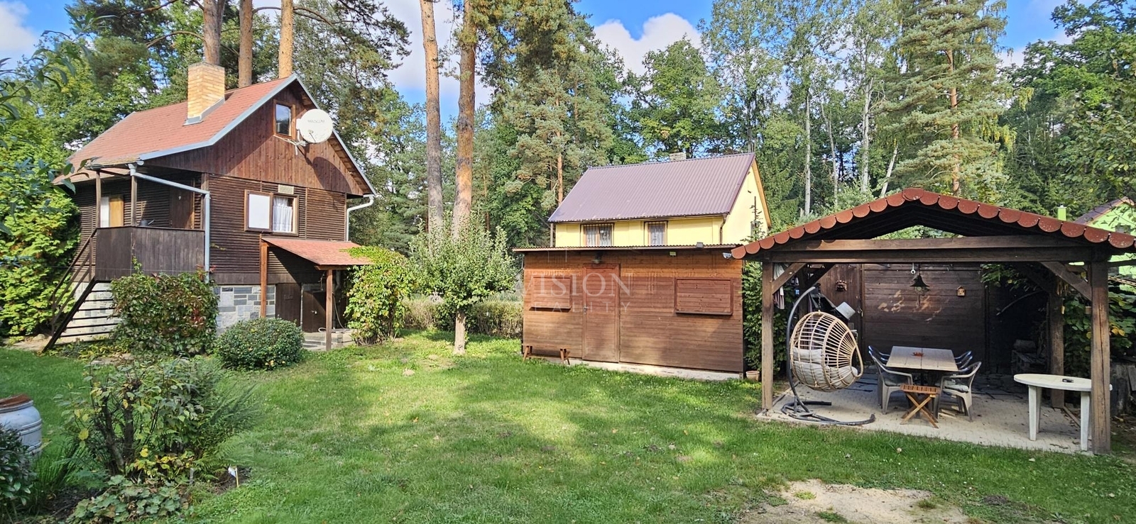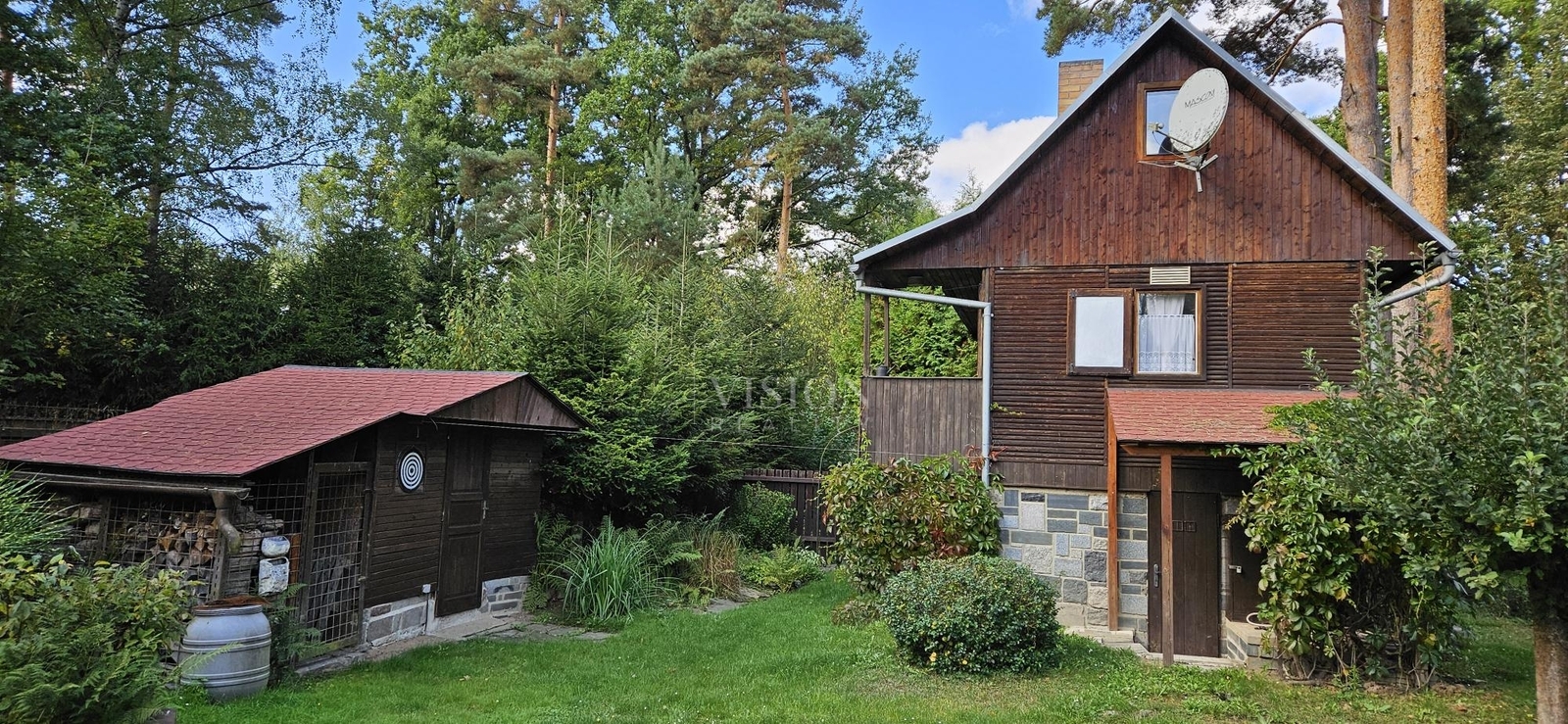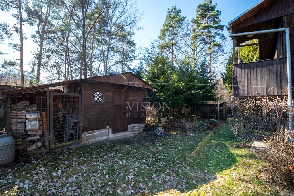 Na pozemku se nachází kopaná studna s užitkovou vodou, septik, dřevník, dílna a příjemné kryté posezení s ohništěm, ideální pro letní večery s rodinou či přáteli.
