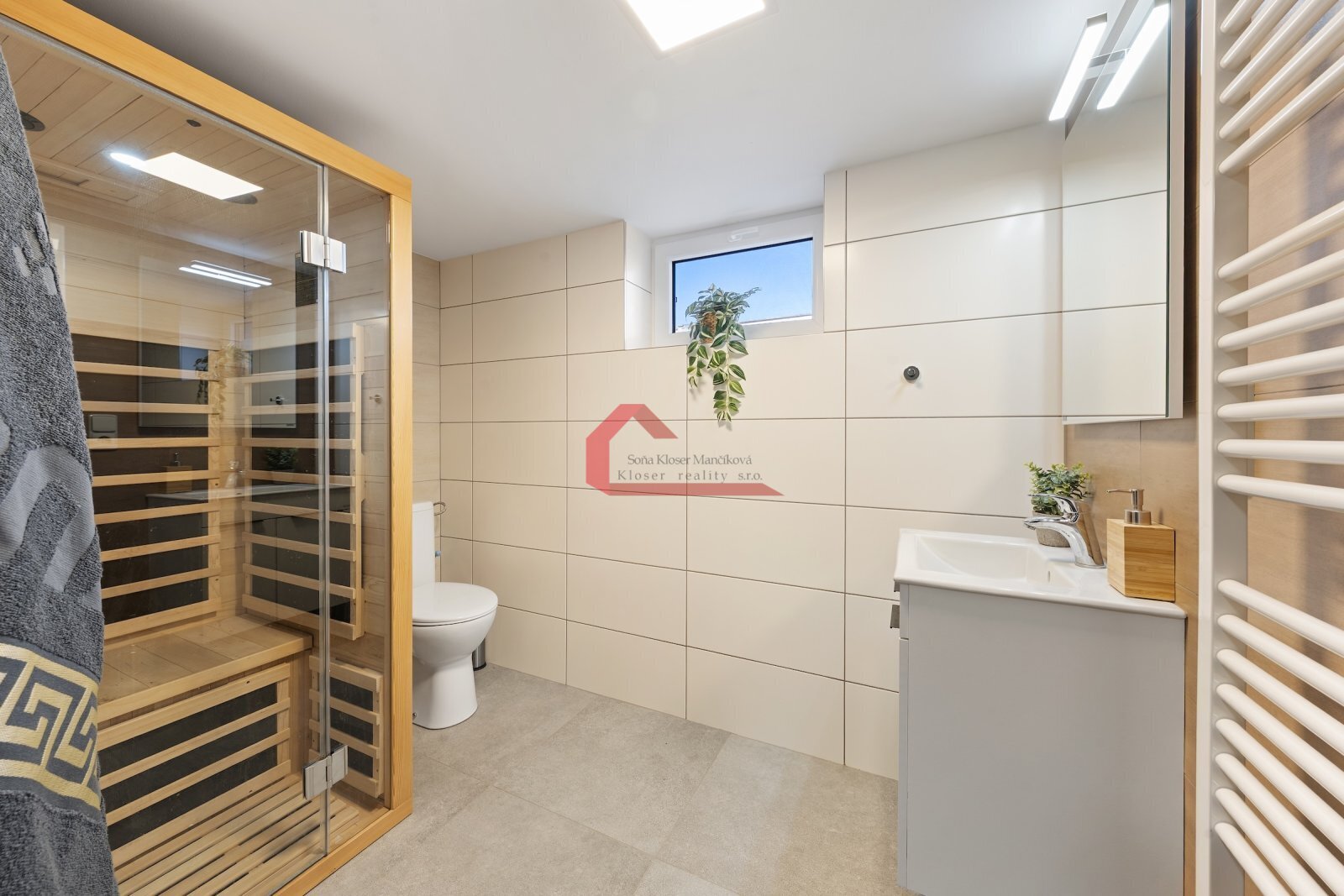 Tento plně klimatizovaný dům má celkovou plochu 485 m2 a nabízí prostorné obytné prostory s užitnou plochou 201 m2. V domě se nachází 2 nadzemní podlaží a 1 podzemní podlaží. Je zde 6 ložnic, obývací pokoj se zděným krbem, jídelna a kuchyně se vstupem na prostornou terasu s posezením a úchvatným výhledem do okolí. Jsou zde 2 koupelny s vanou a WC a dále místnost s infrasaunou značky Marimex s WC a umyvadlem .