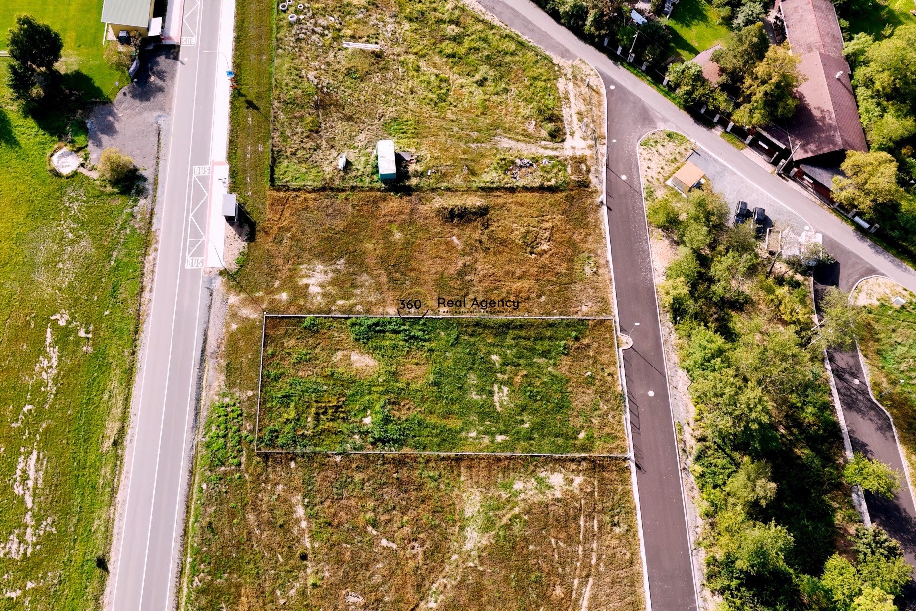 Pozemek má ideální obdélníkový tvar, je rovinatý a kompletně zasíťovaný – k dispozici je voda, kanalizace i elektřina.