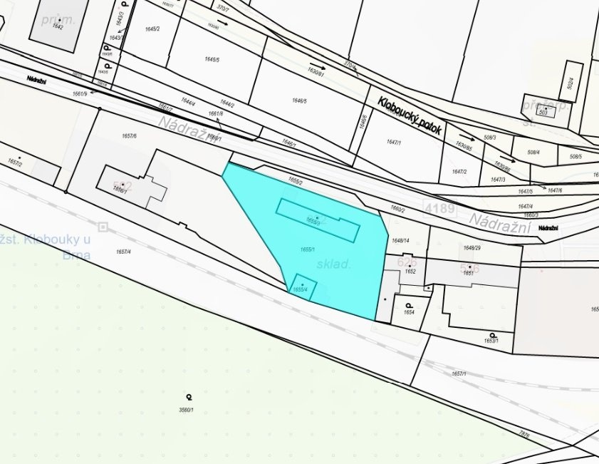 Jedná se o výrobně-skladovací areál se stávajícími budovami: administrativní budova s kancelářemi a sociálním zázemím, navazující sklady, dílna, garáže, přístřešky; zpevněnou a manipulační plochou a doplňkovými stavbami, to vše nacházející se na pozemcích uvedených na LV č. 507 v k.ú. Klobouky u Brna.